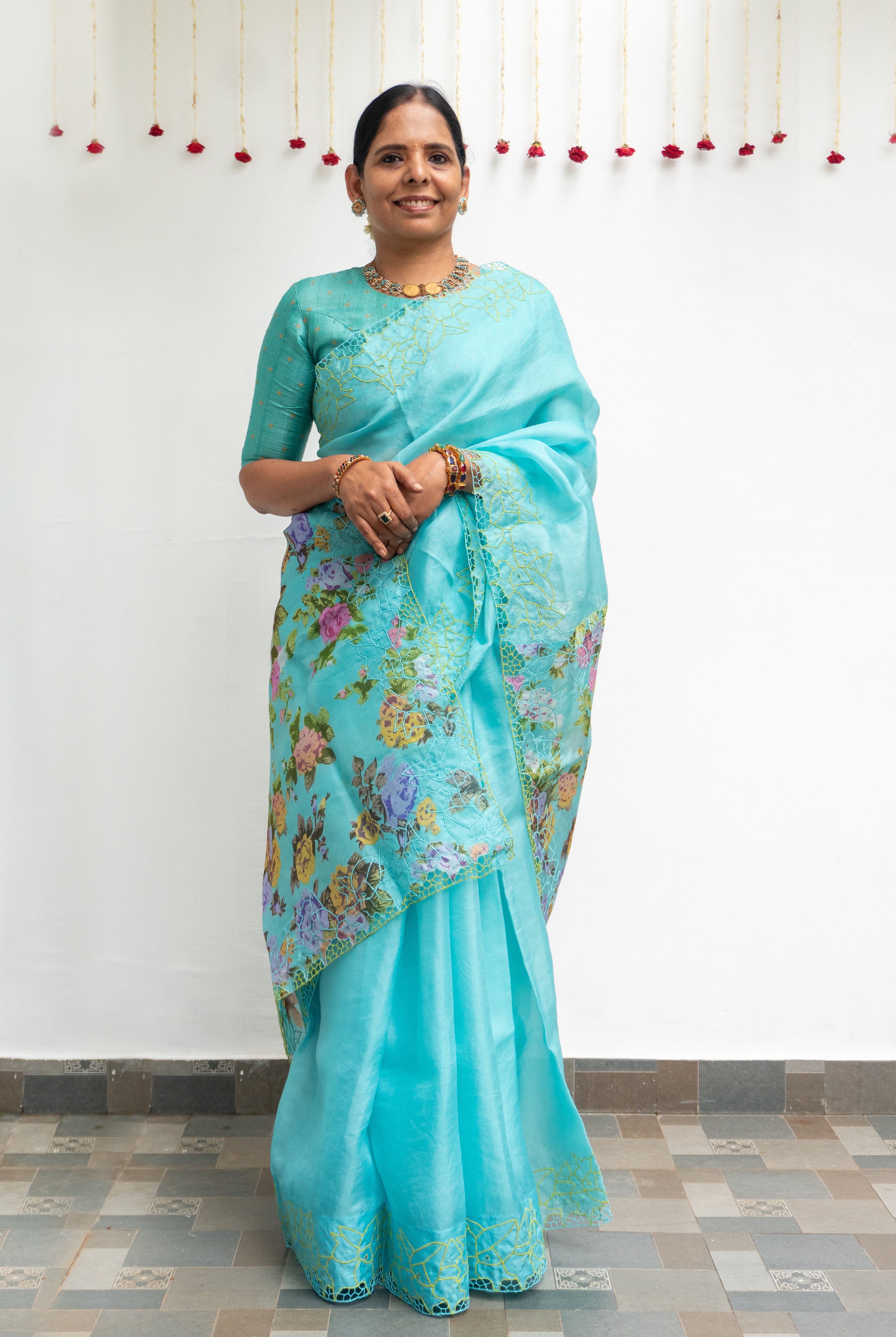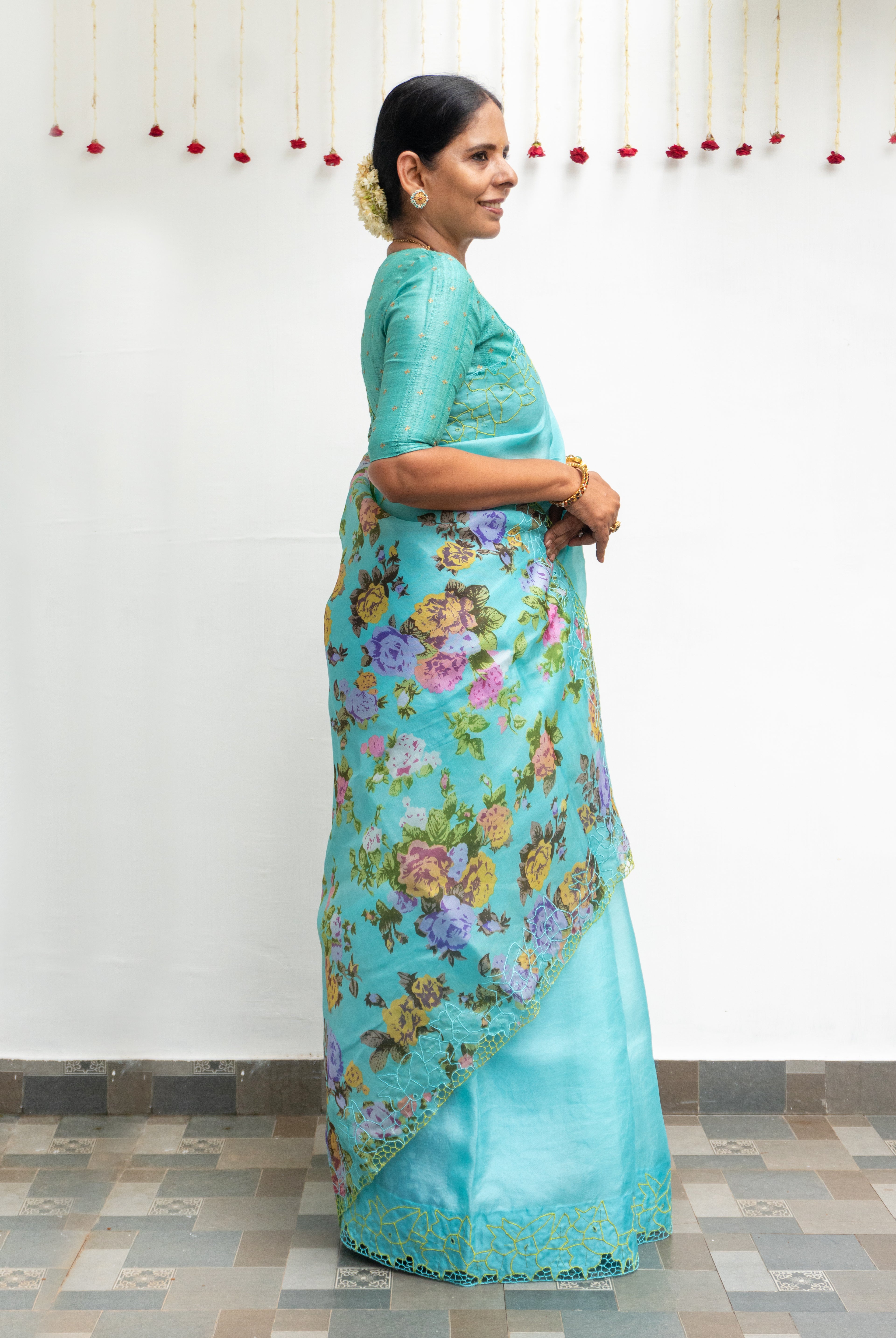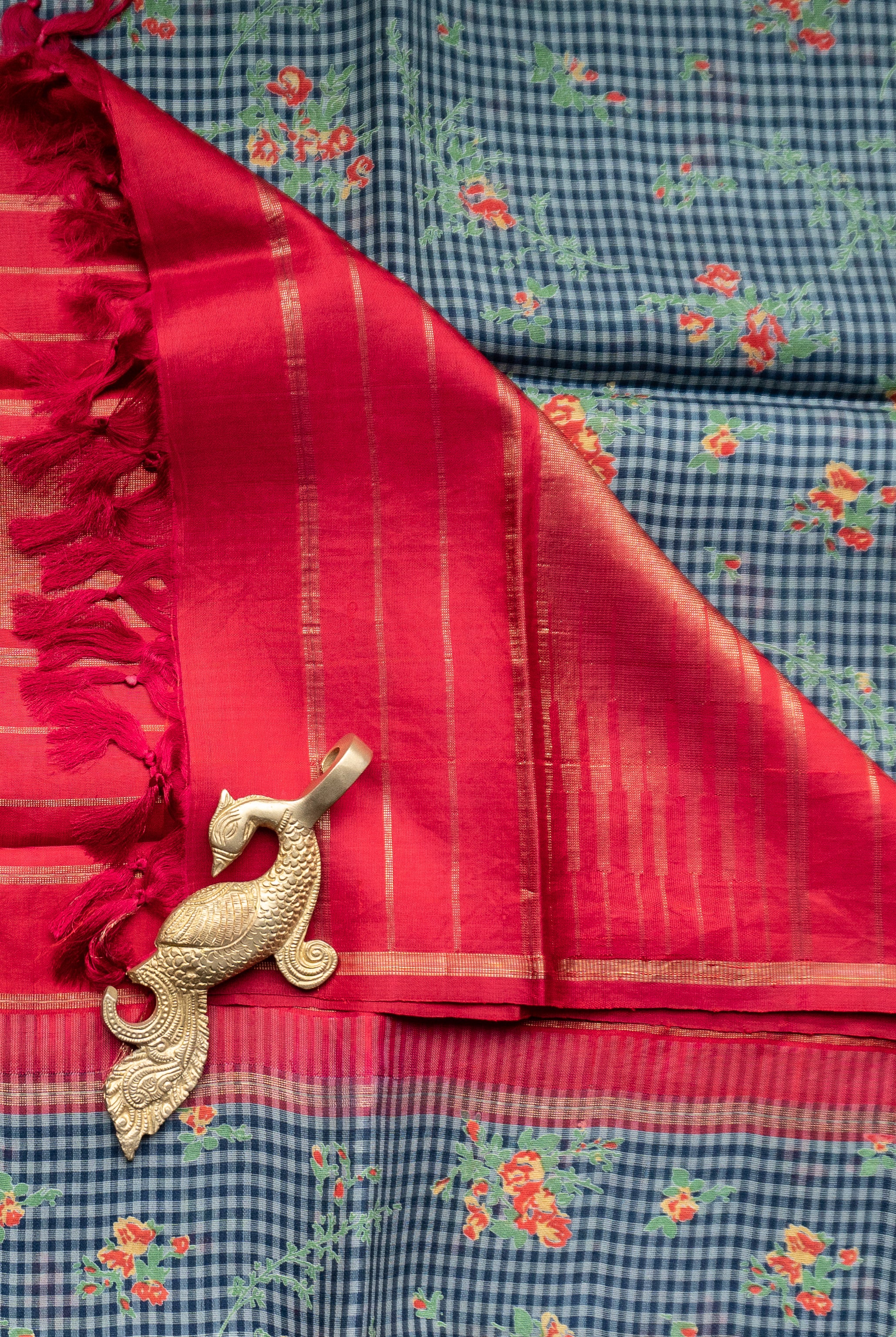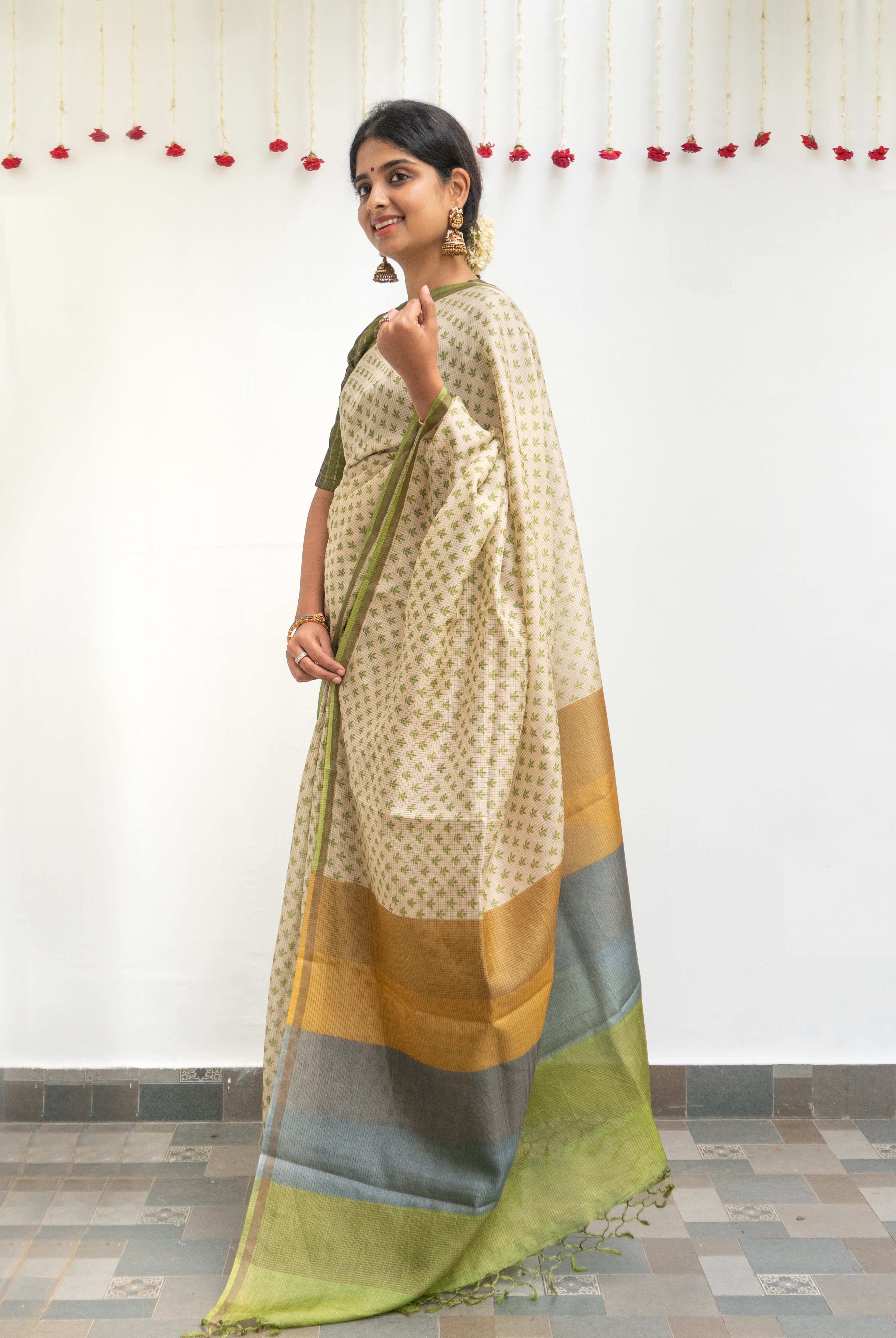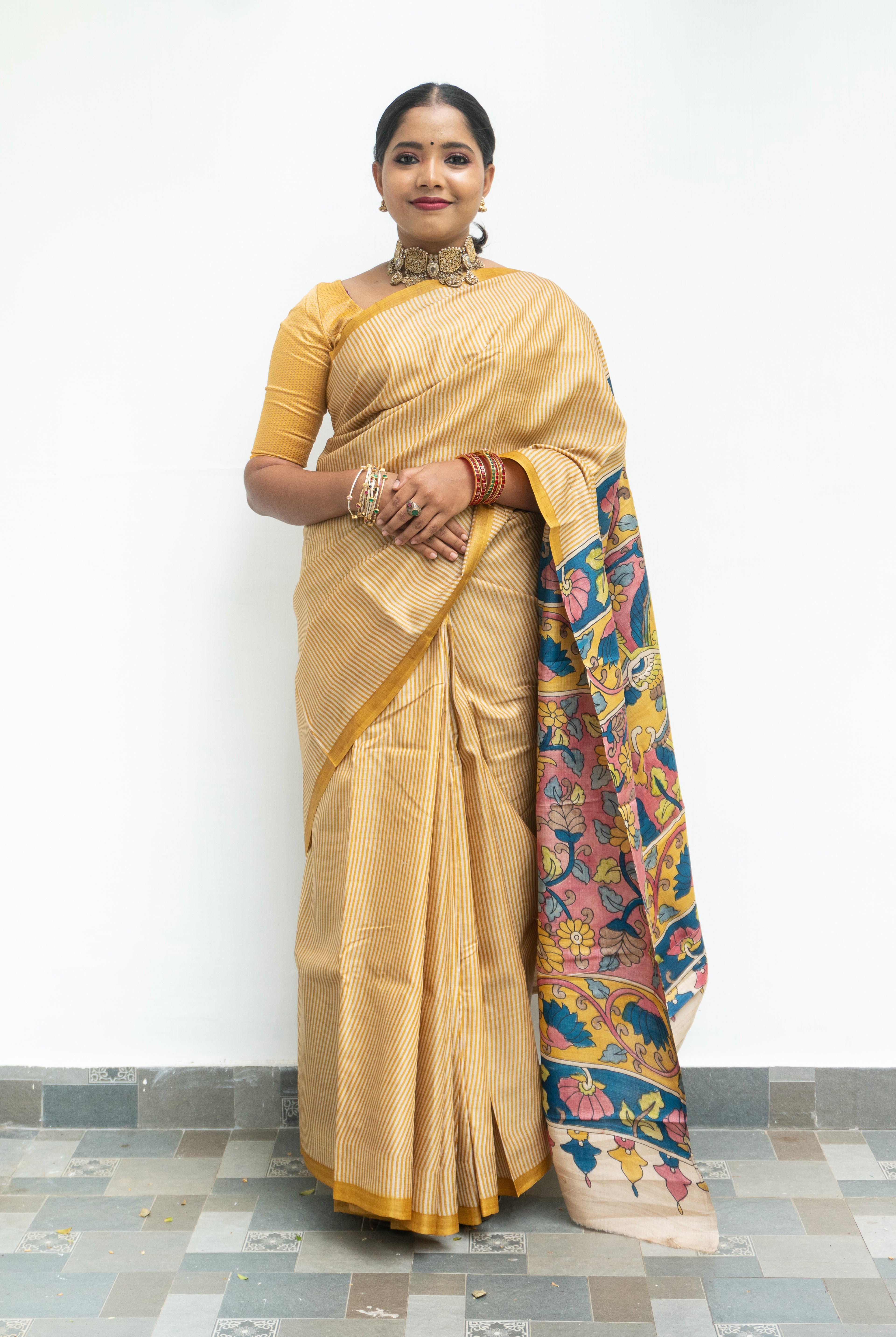 Perfect for festive occasions, weddings, and cultural celebrations, this floral tussar silk saree pairs effortlessly with traditional or contemporary blouses.
