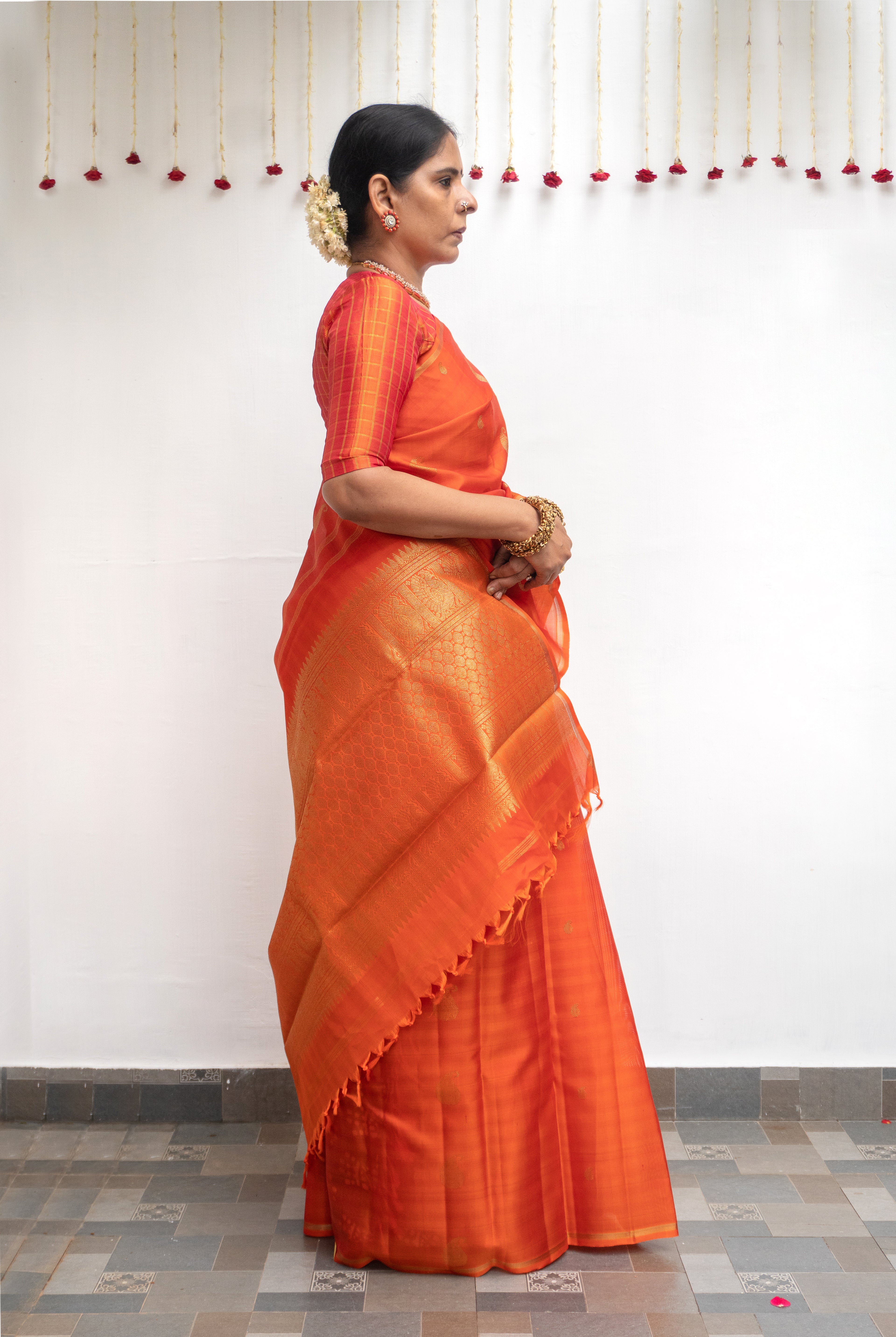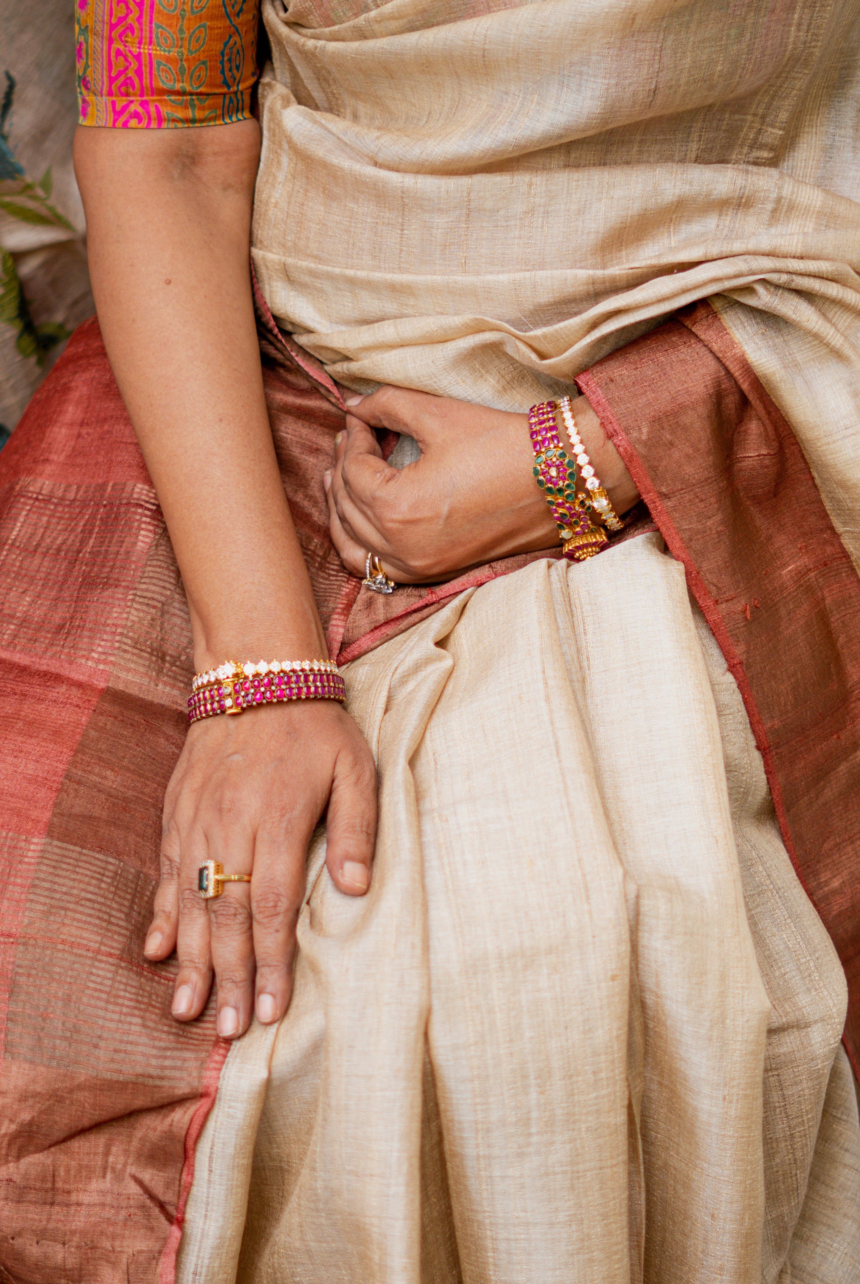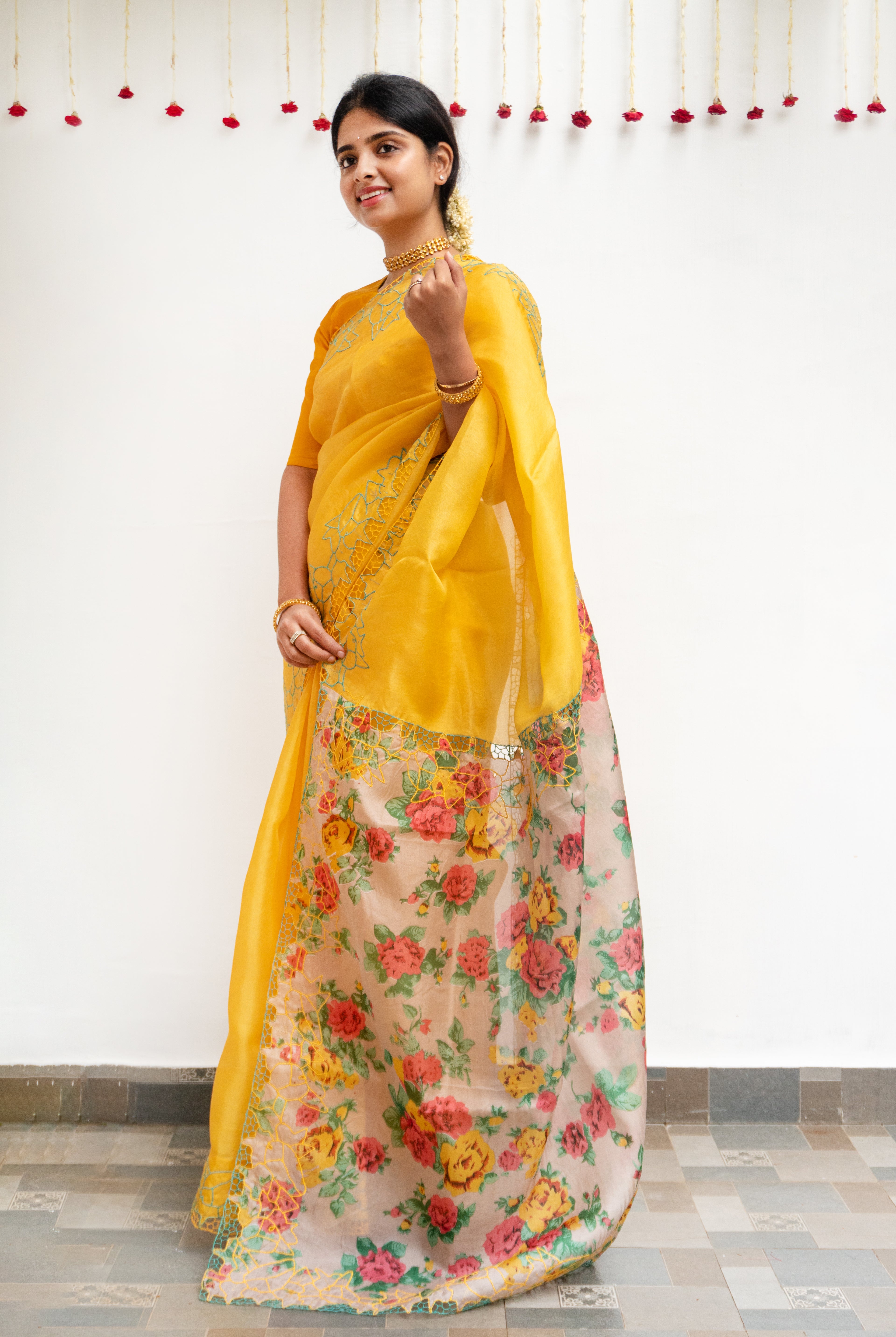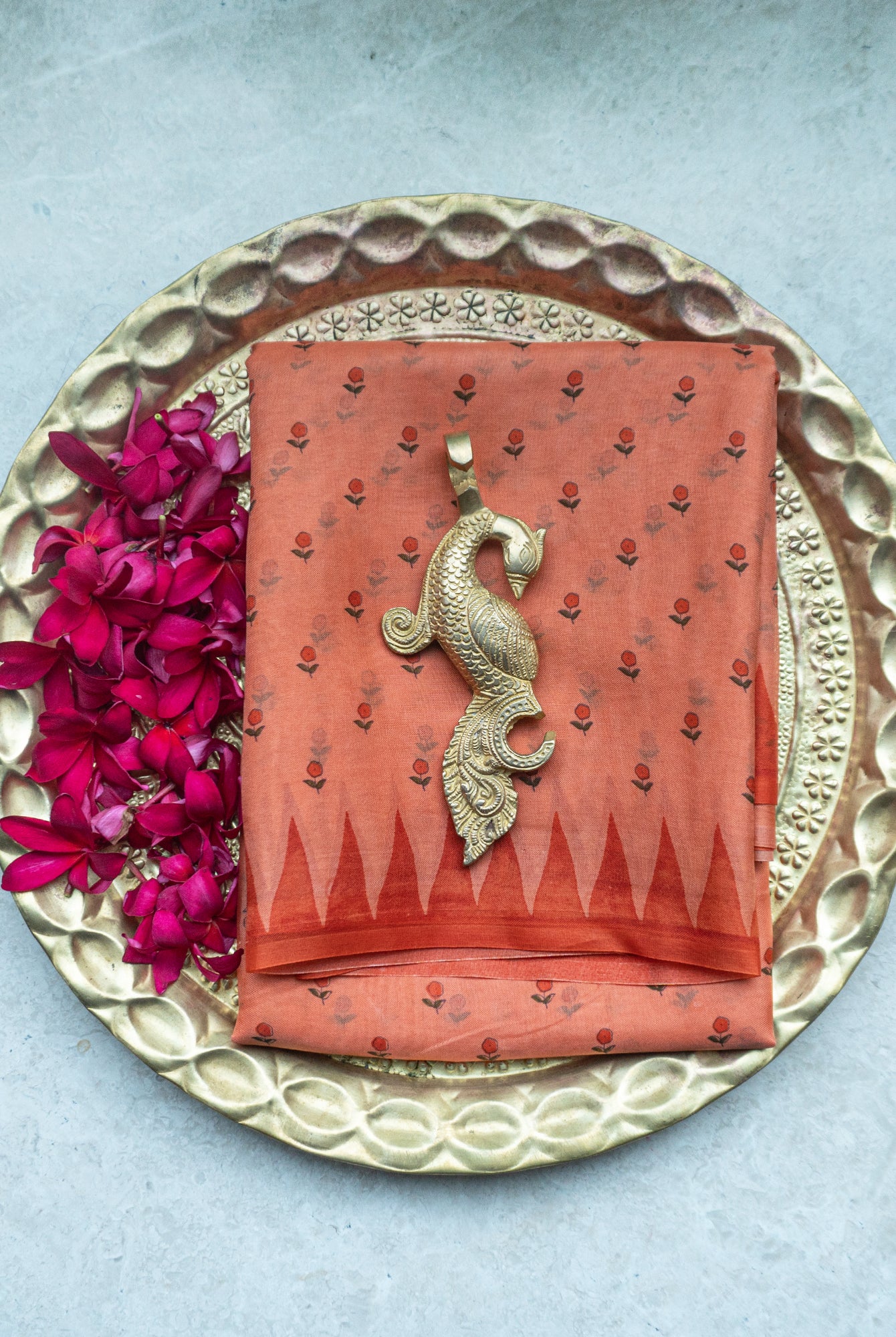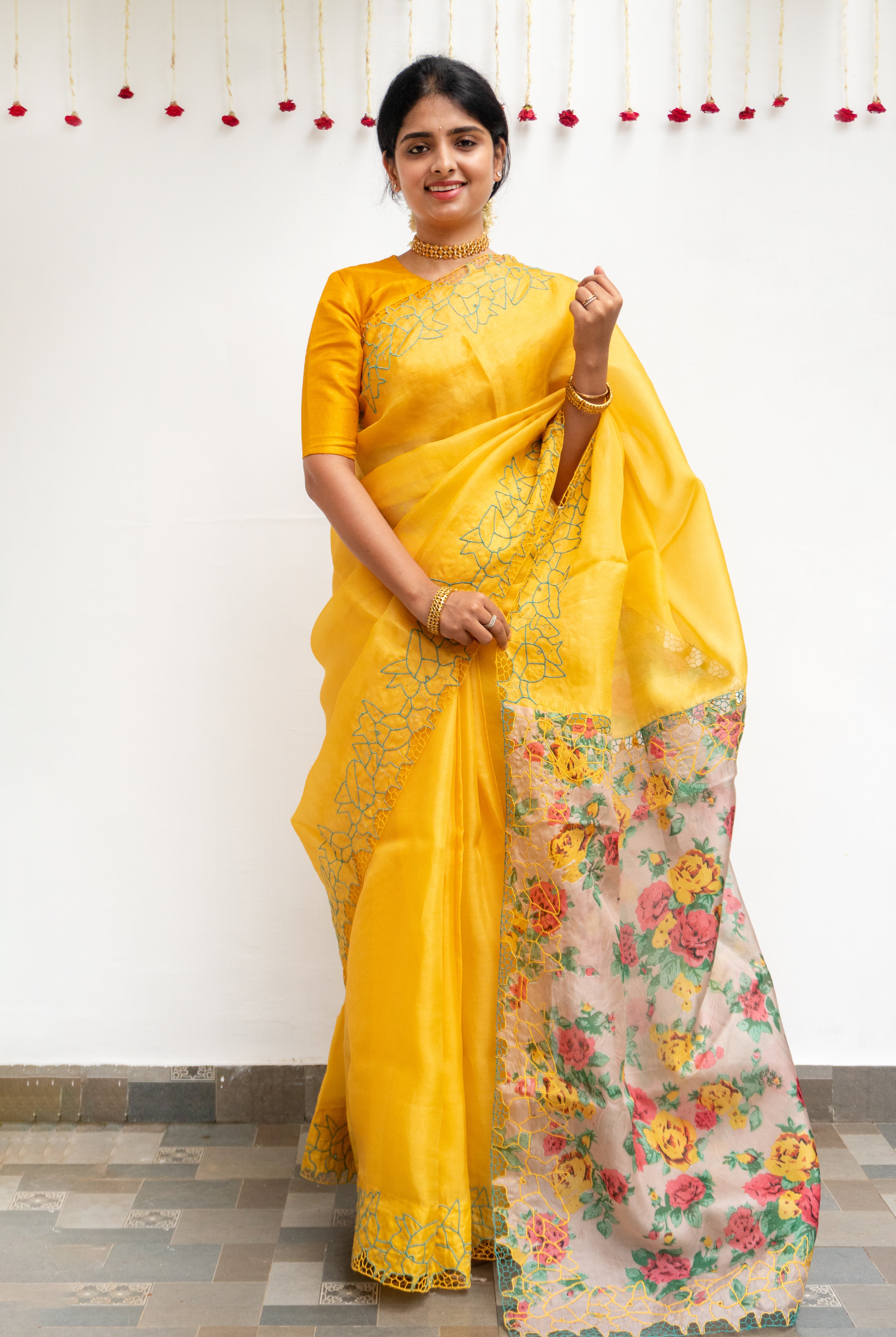 Perfect for festive occasions, weddings, and cultural celebrations, this floral tussar silk saree pairs effortlessly with traditional or contemporary blouses.