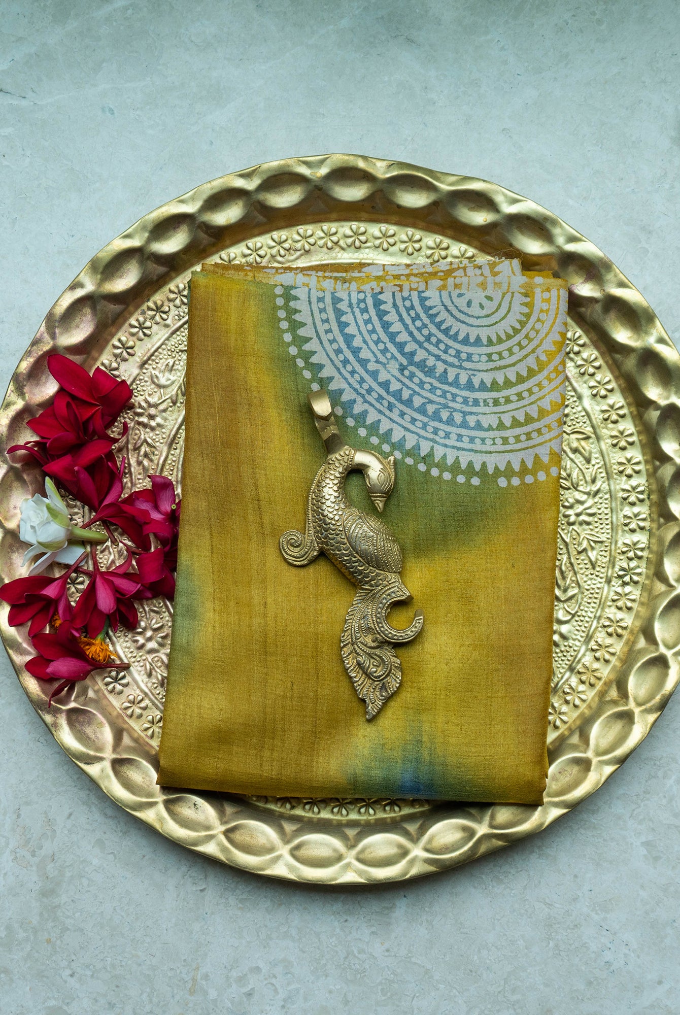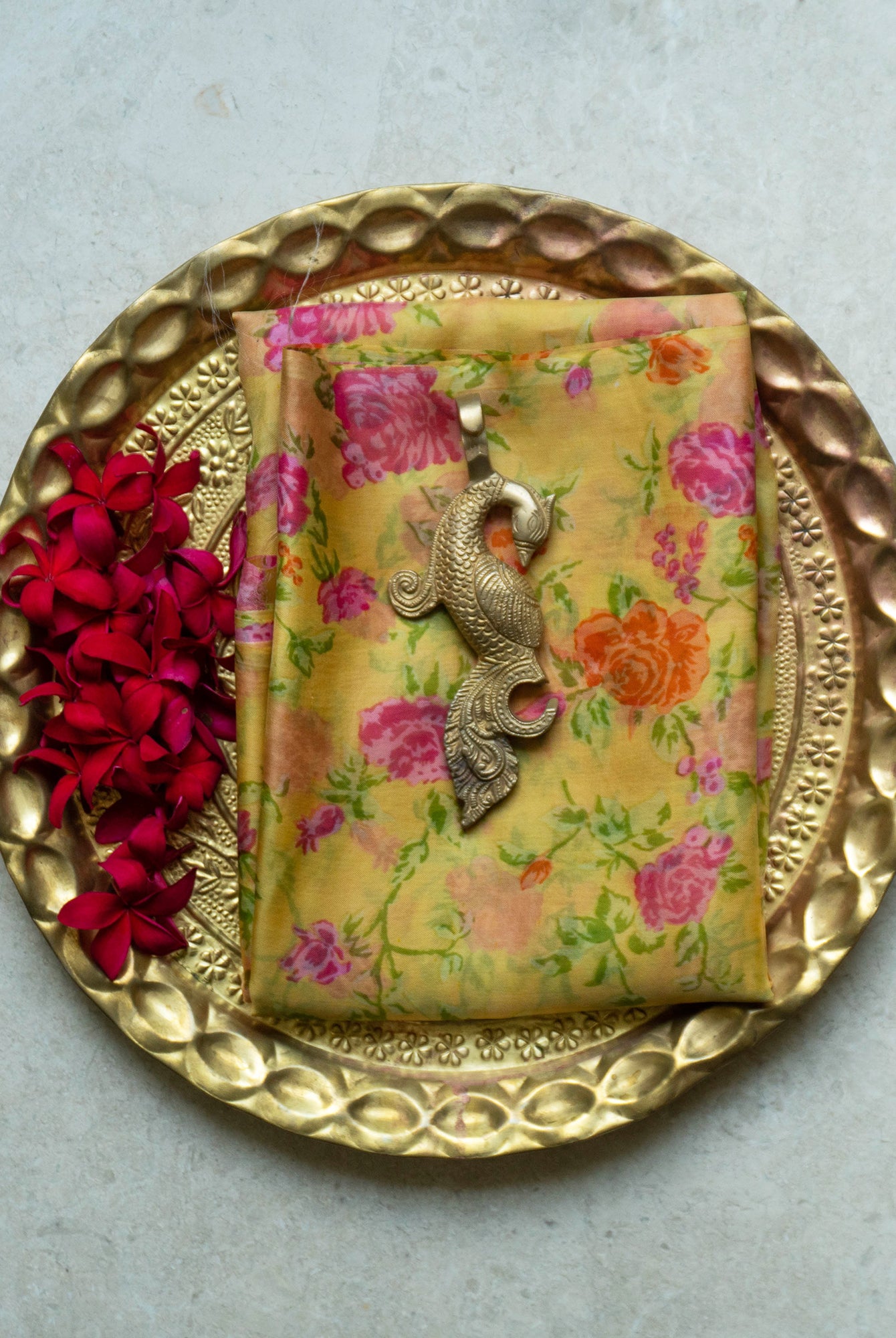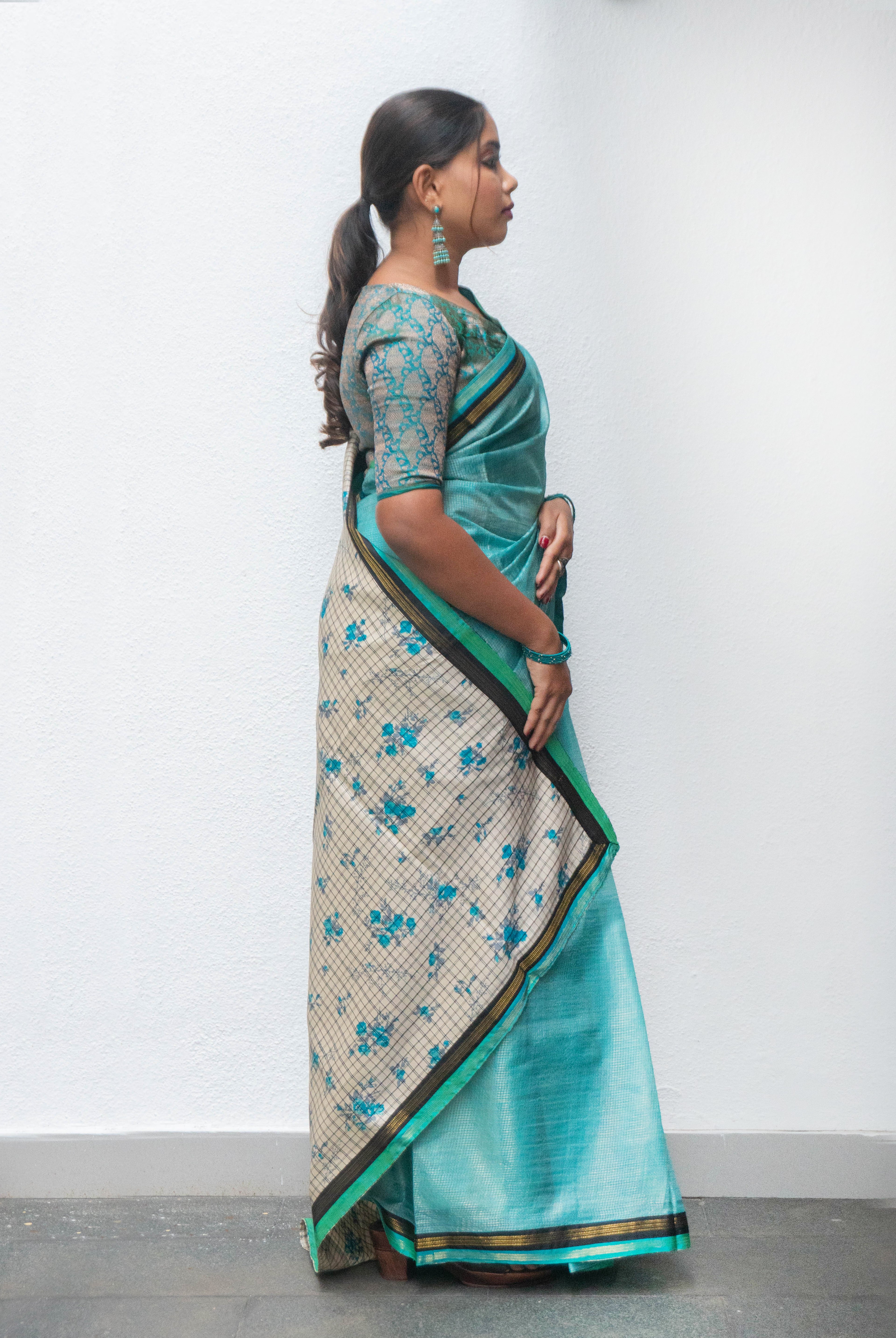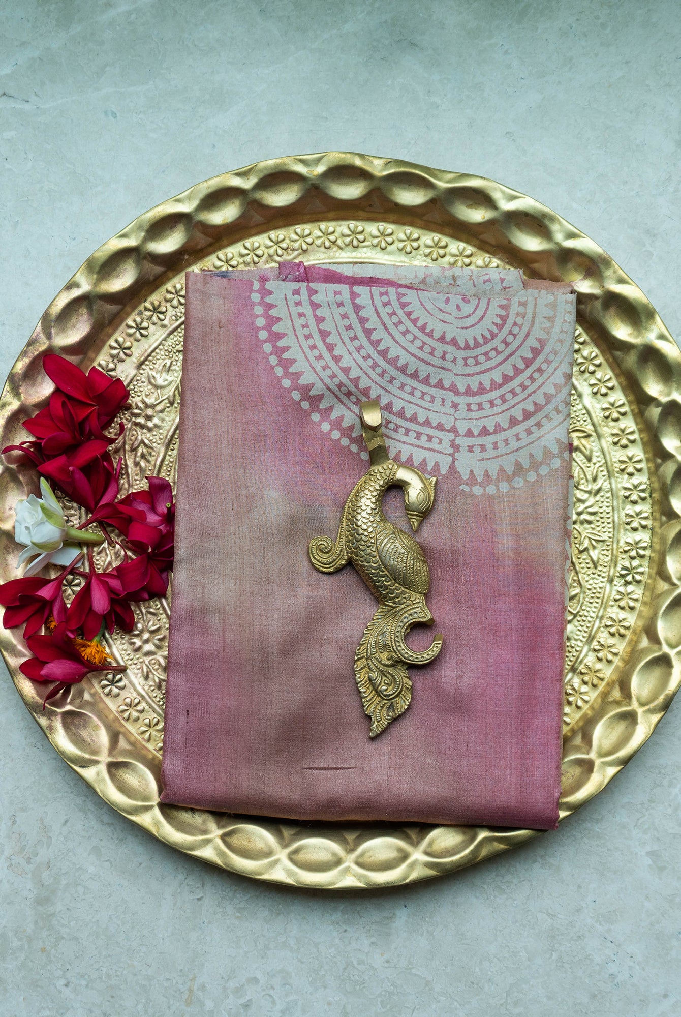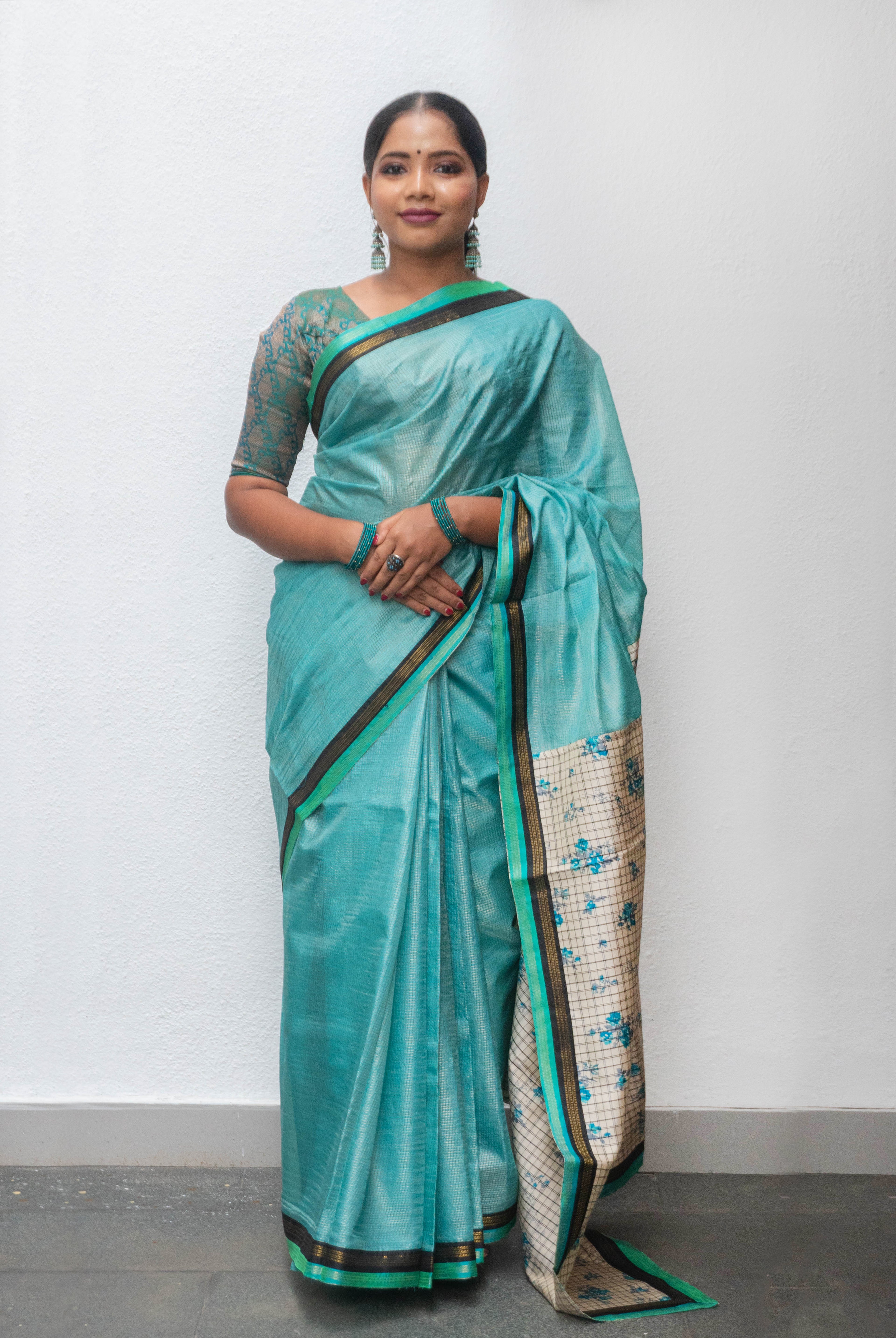Perfect for festive occasions, weddings, and cultural celebrations, this floral tussar silk saree pairs effortlessly with traditional or contemporary blouses.