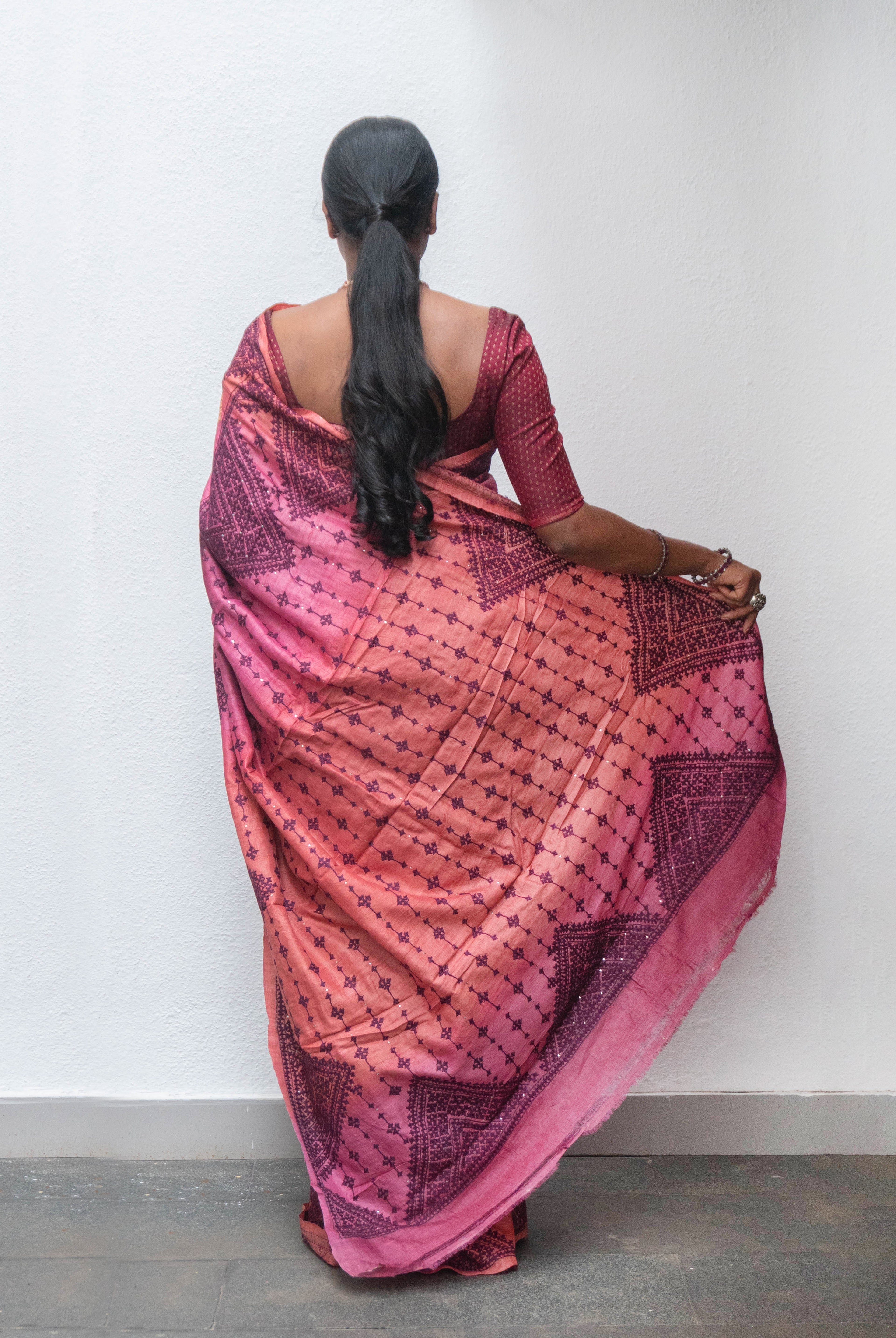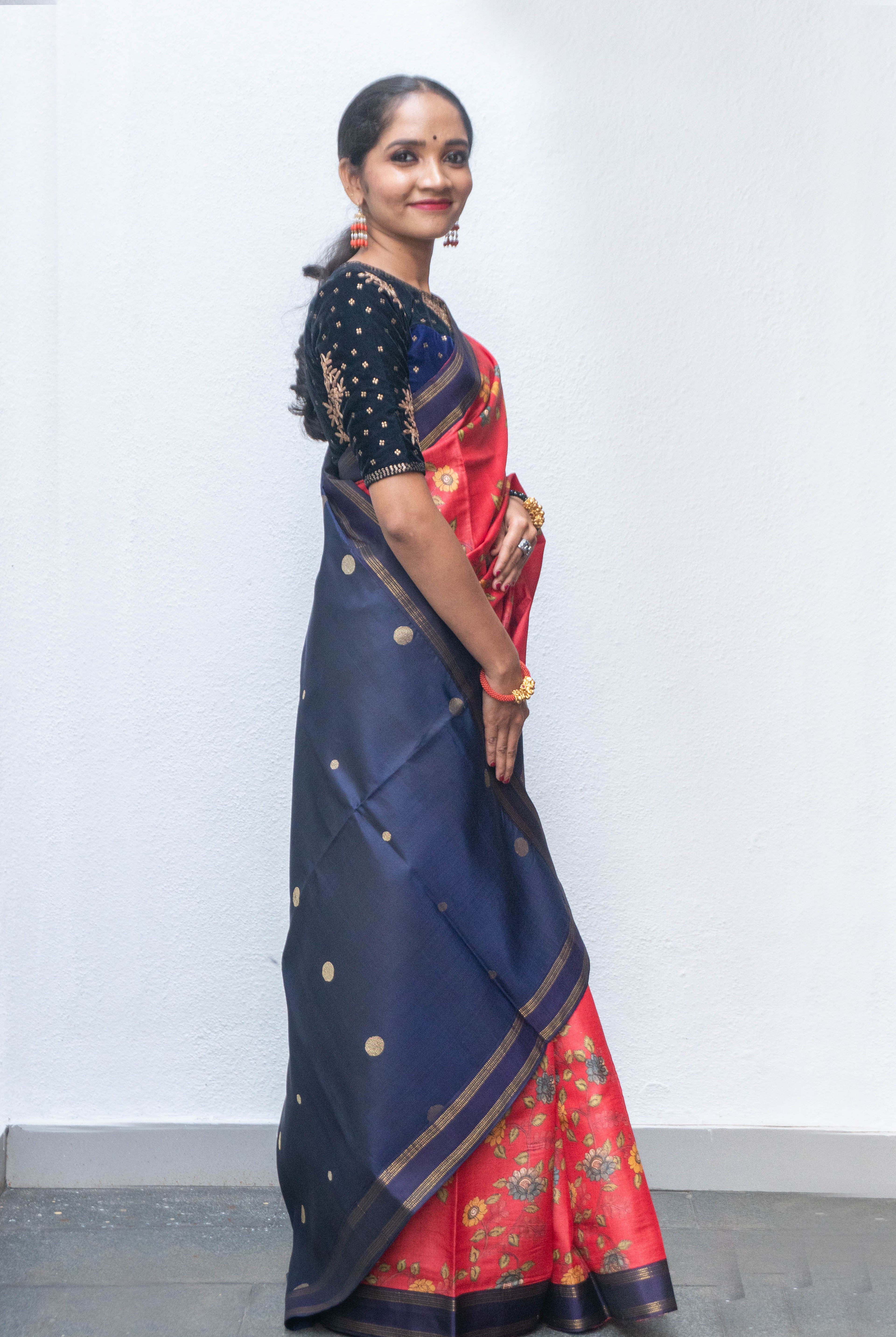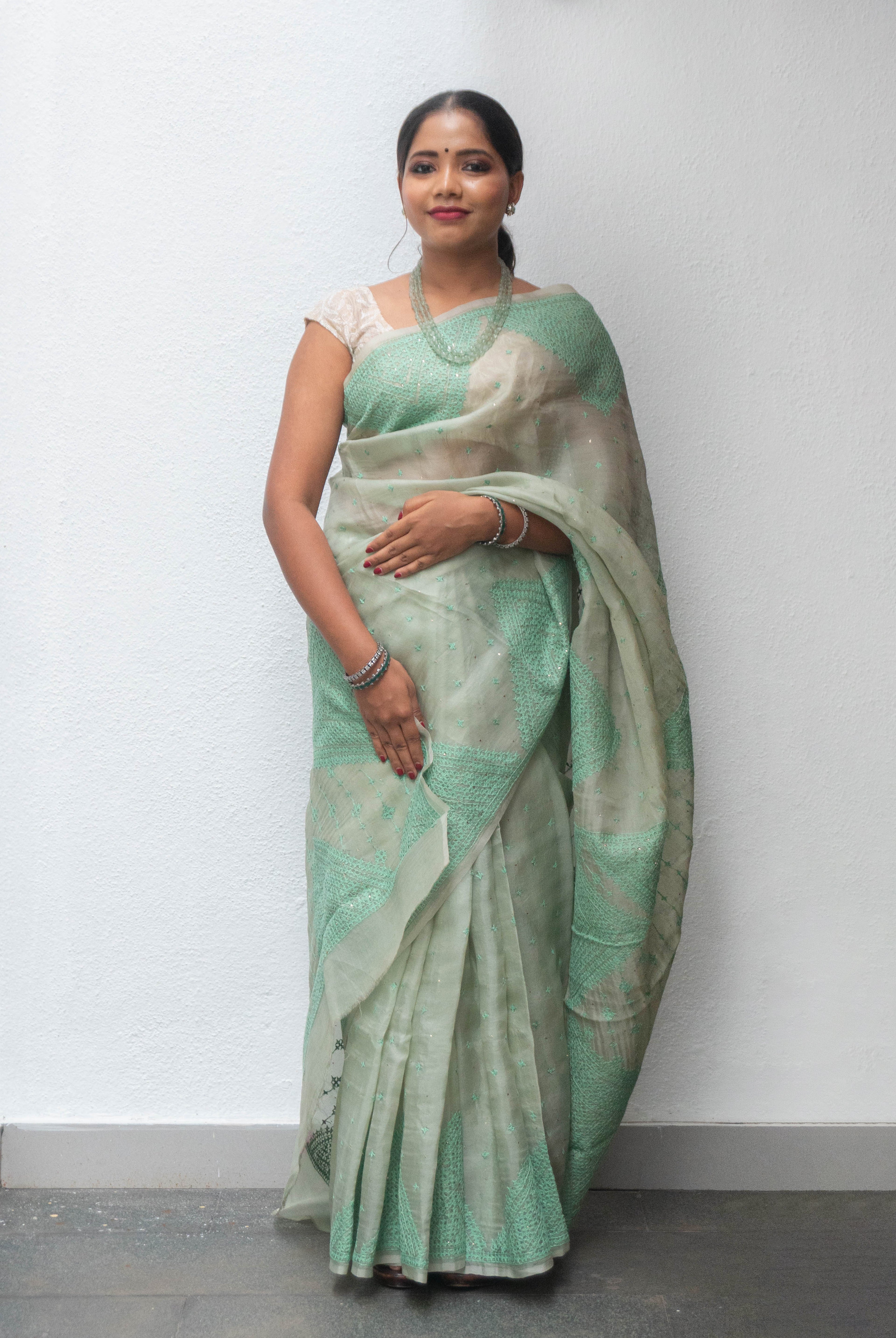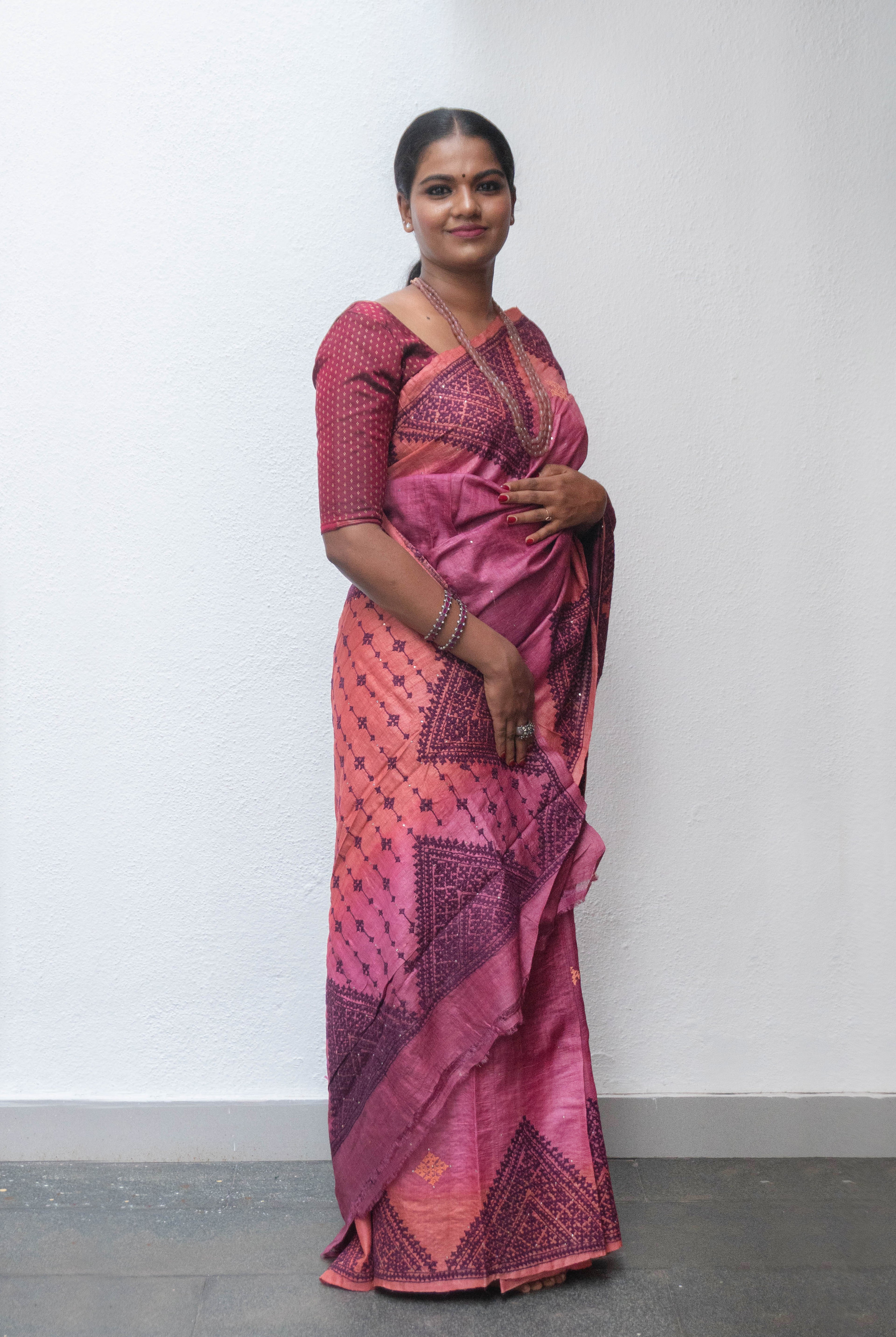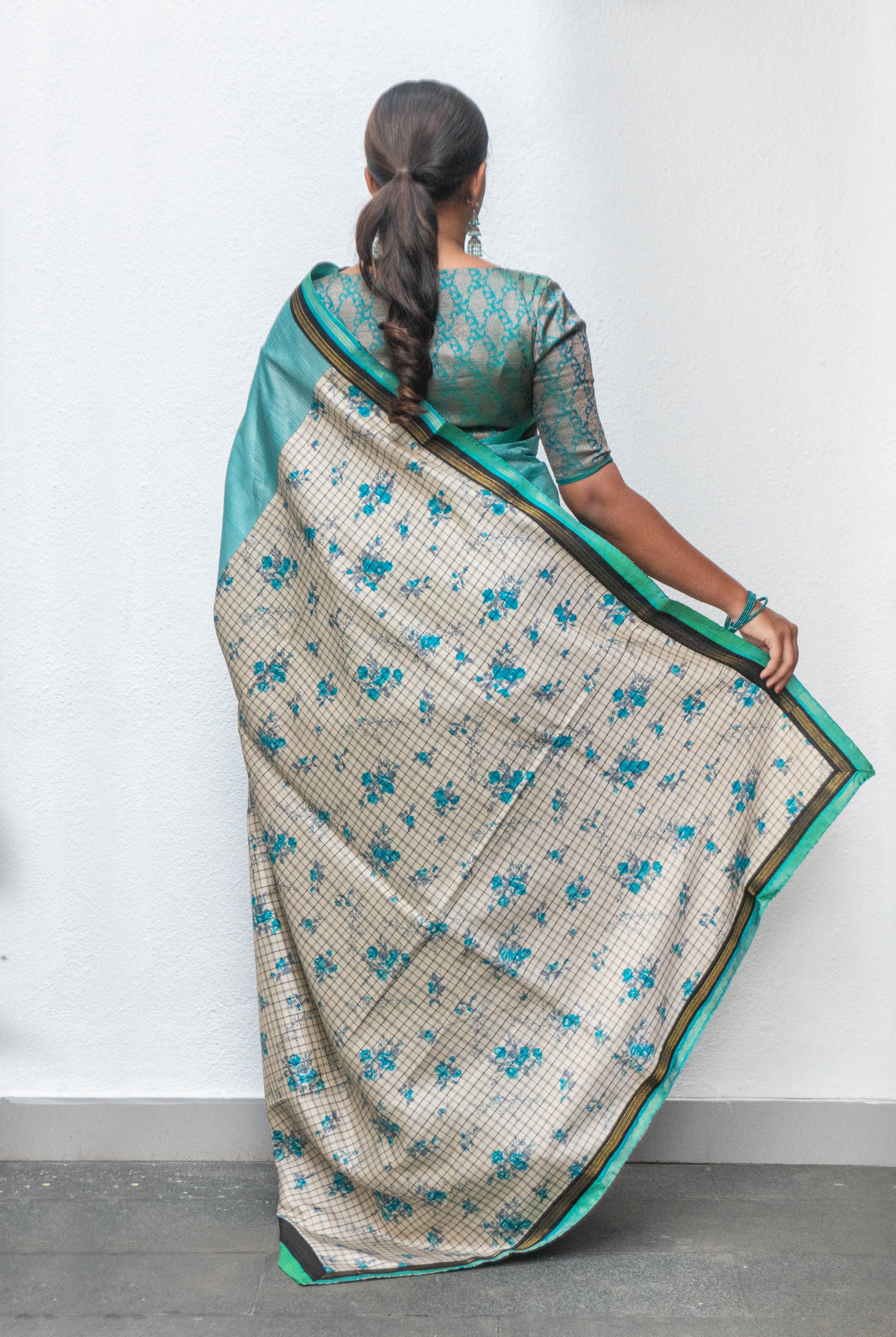 Perfect for festive occasions, weddings, and cultural celebrations, this floral tussar silk saree pairs effortlessly with traditional or contemporary blouses.
