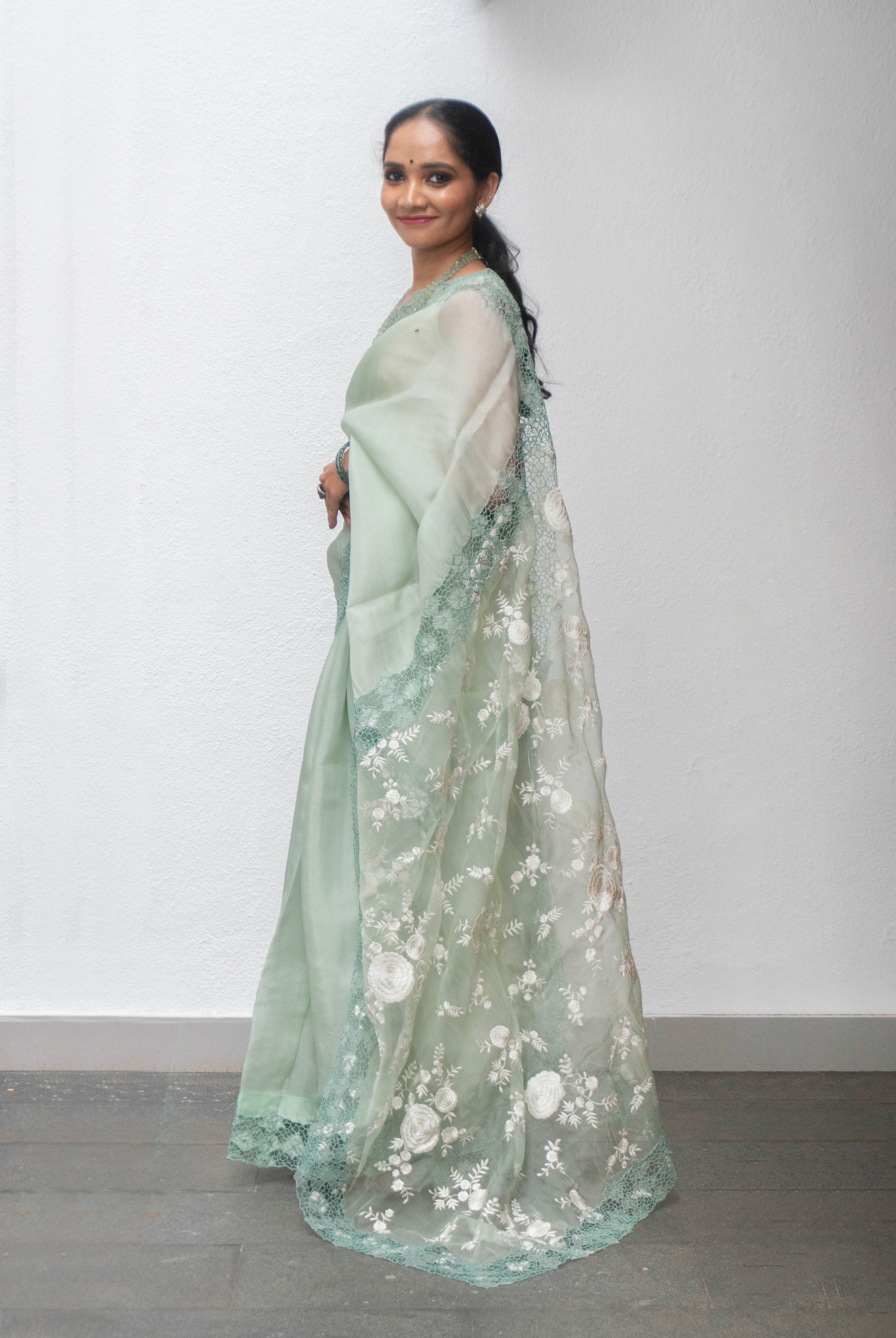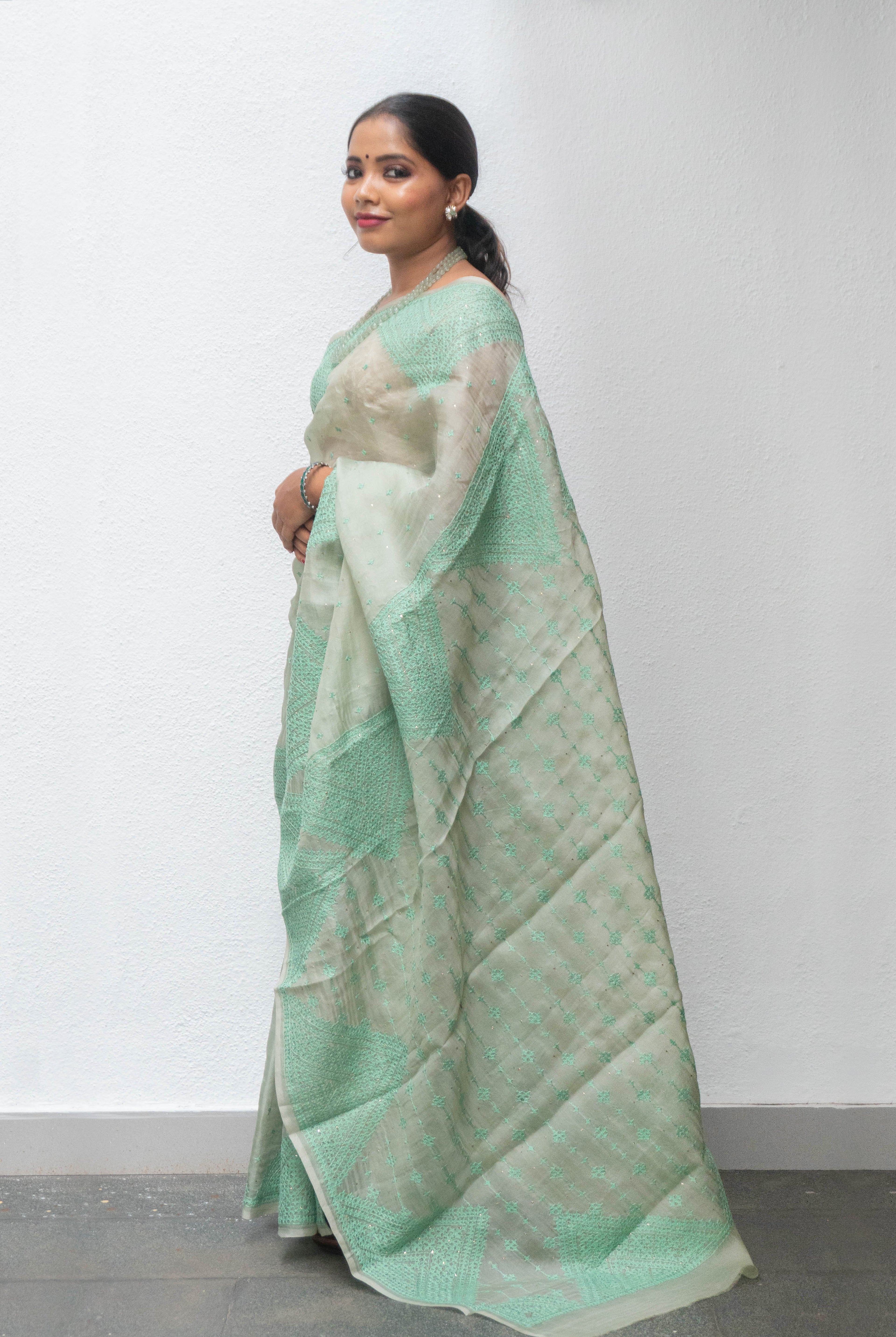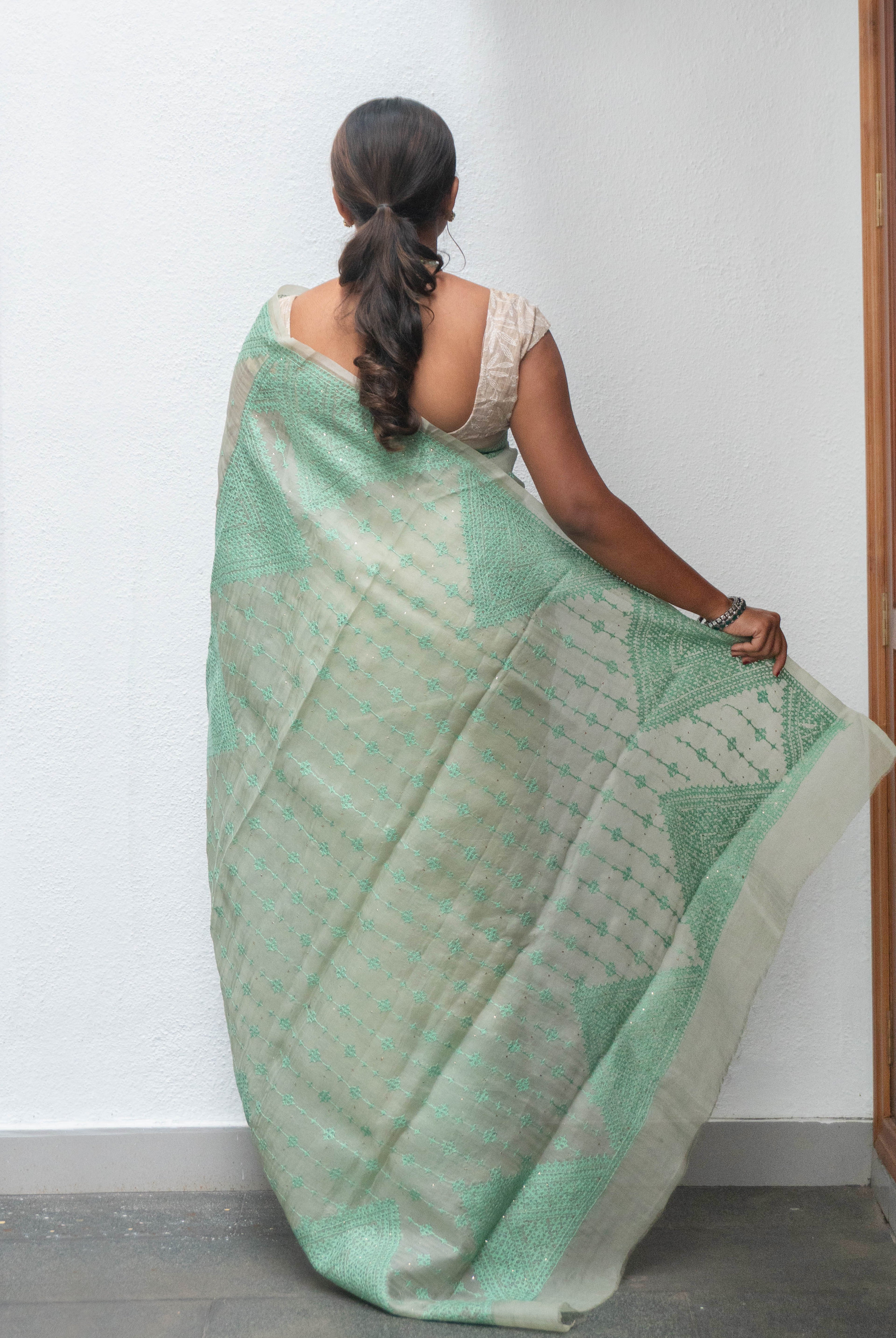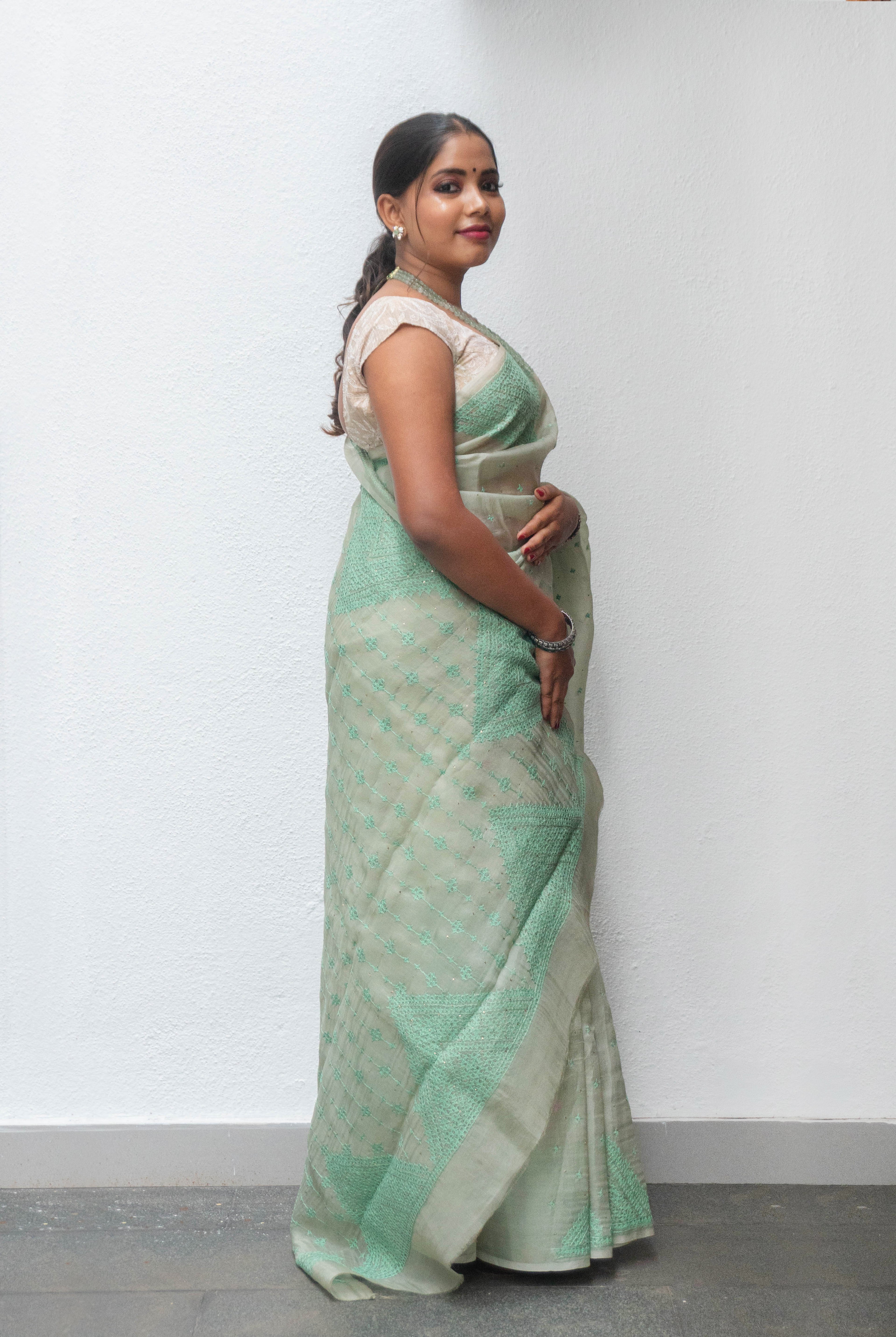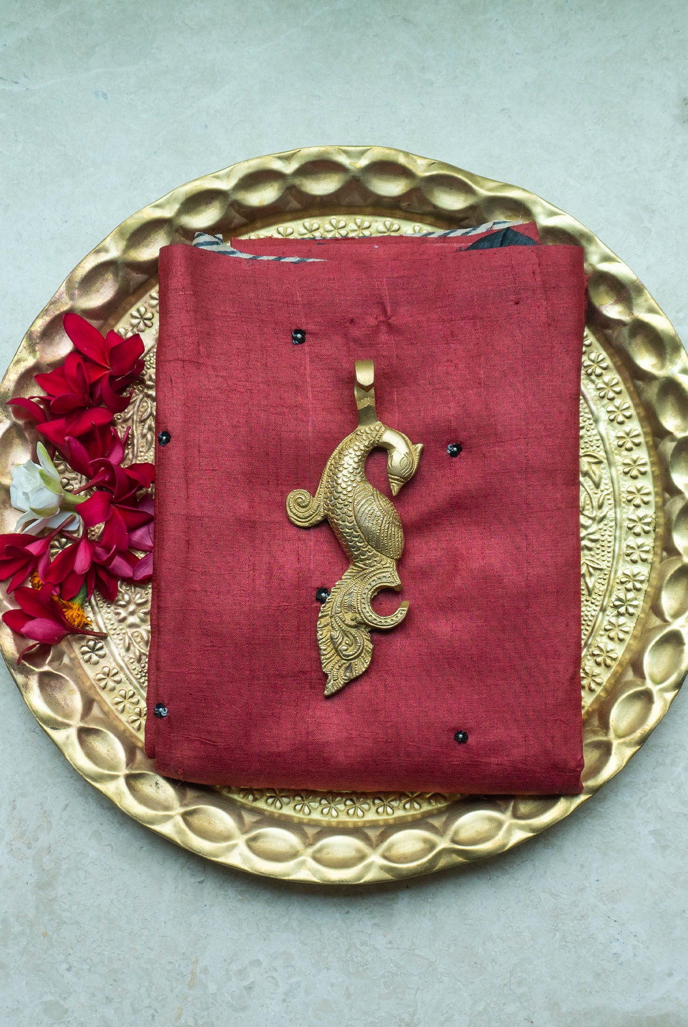 Perfect for festive occasions, weddings, and cultural celebrations, this floral tussar silk saree pairs effortlessly with traditional or contemporary blouses.