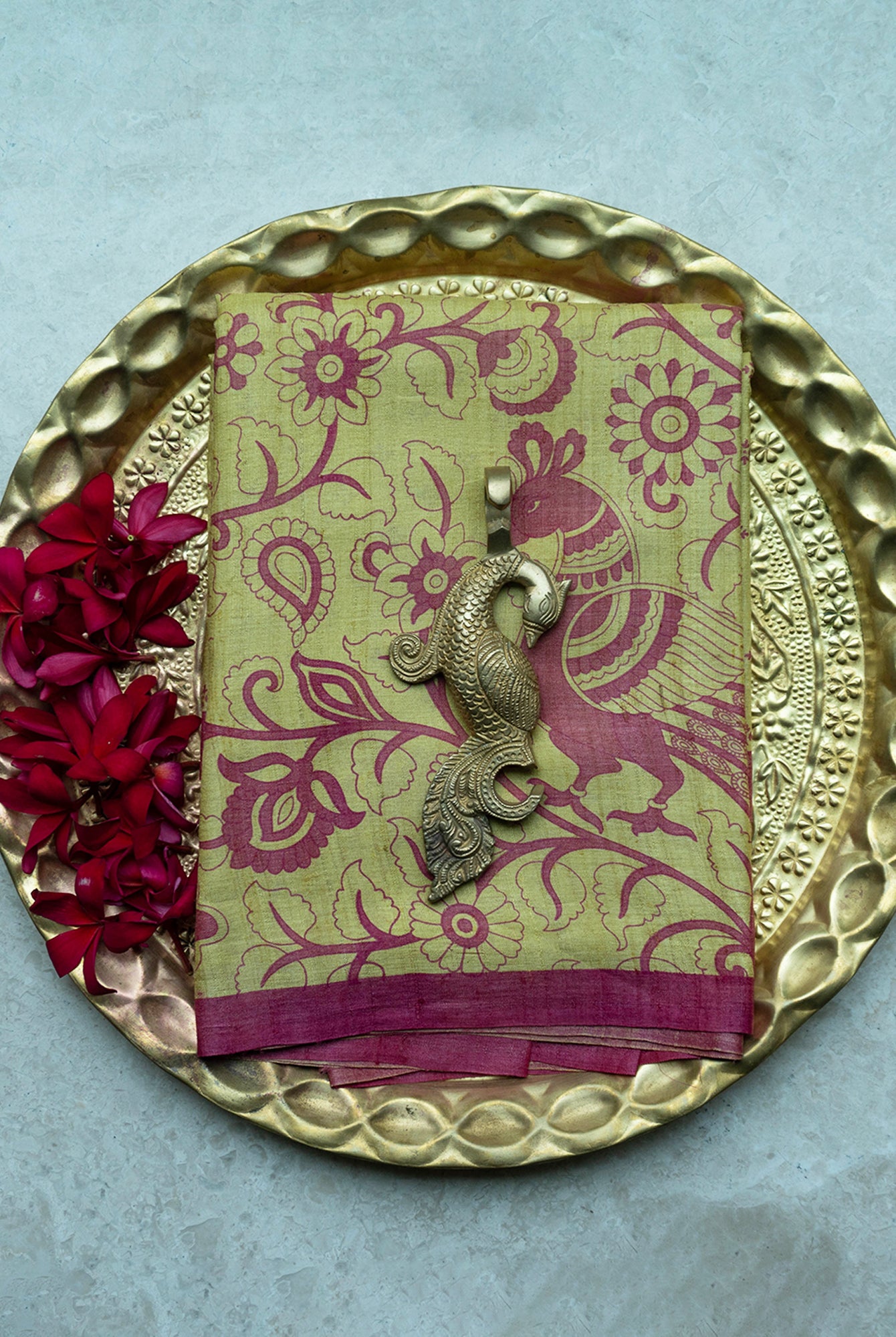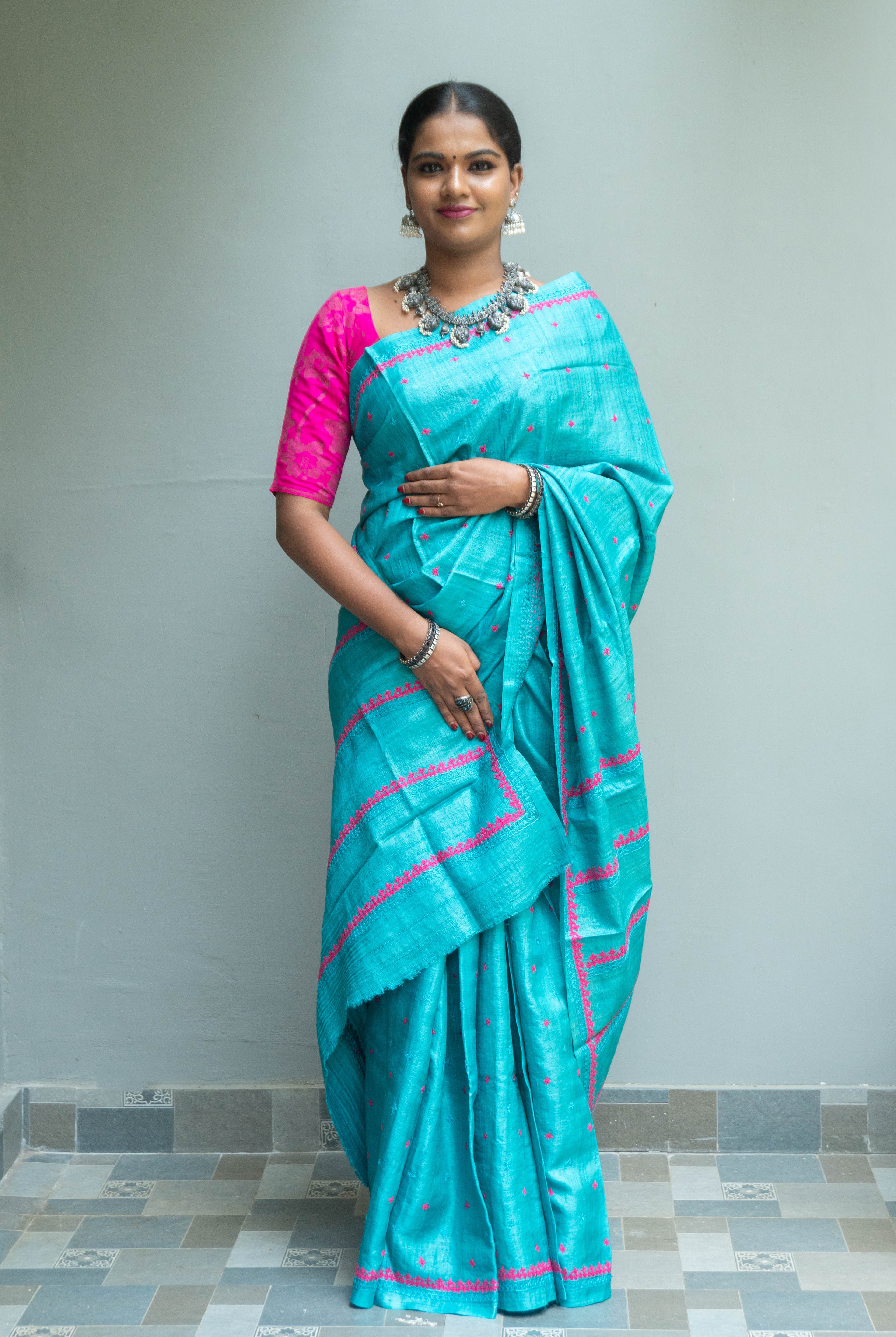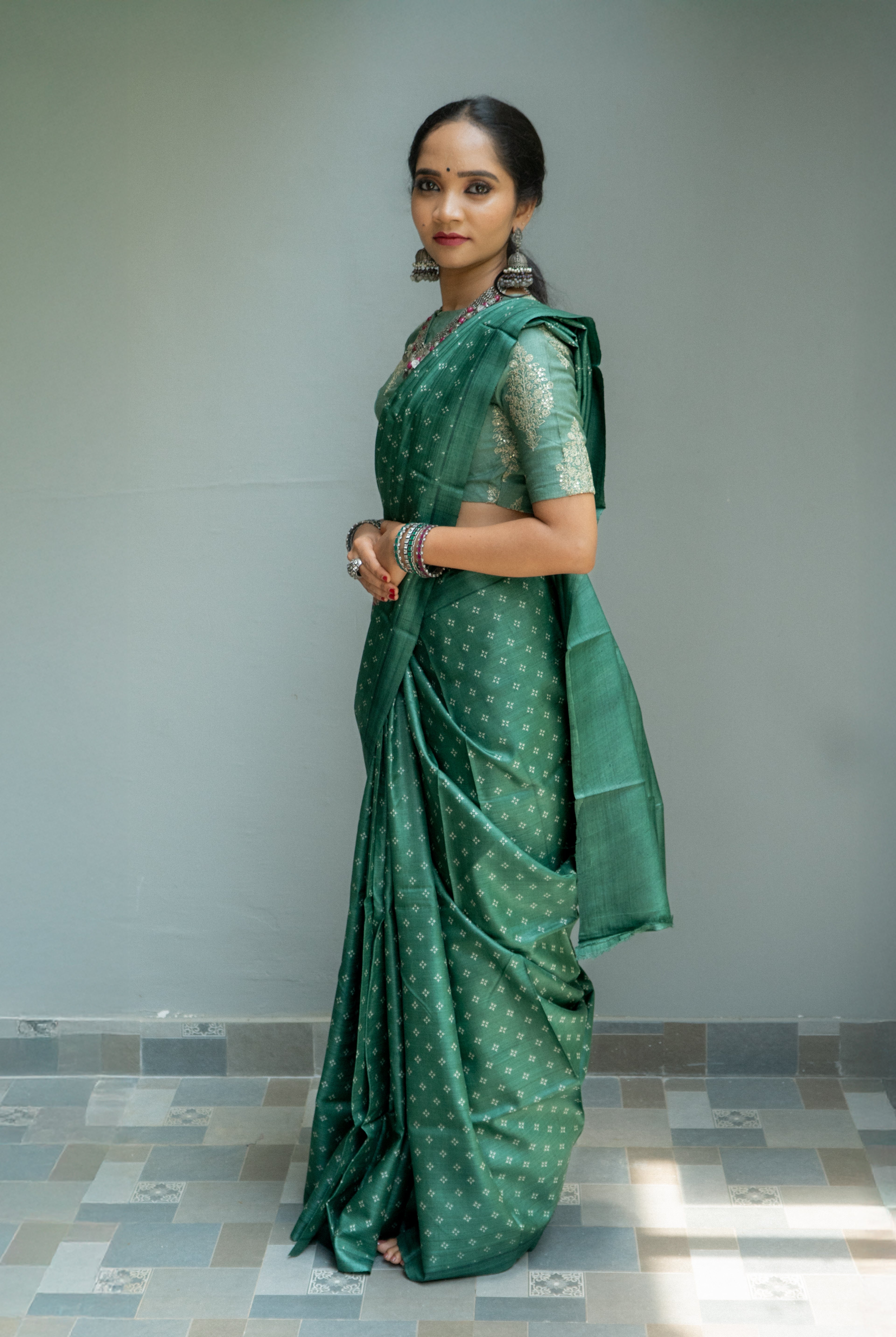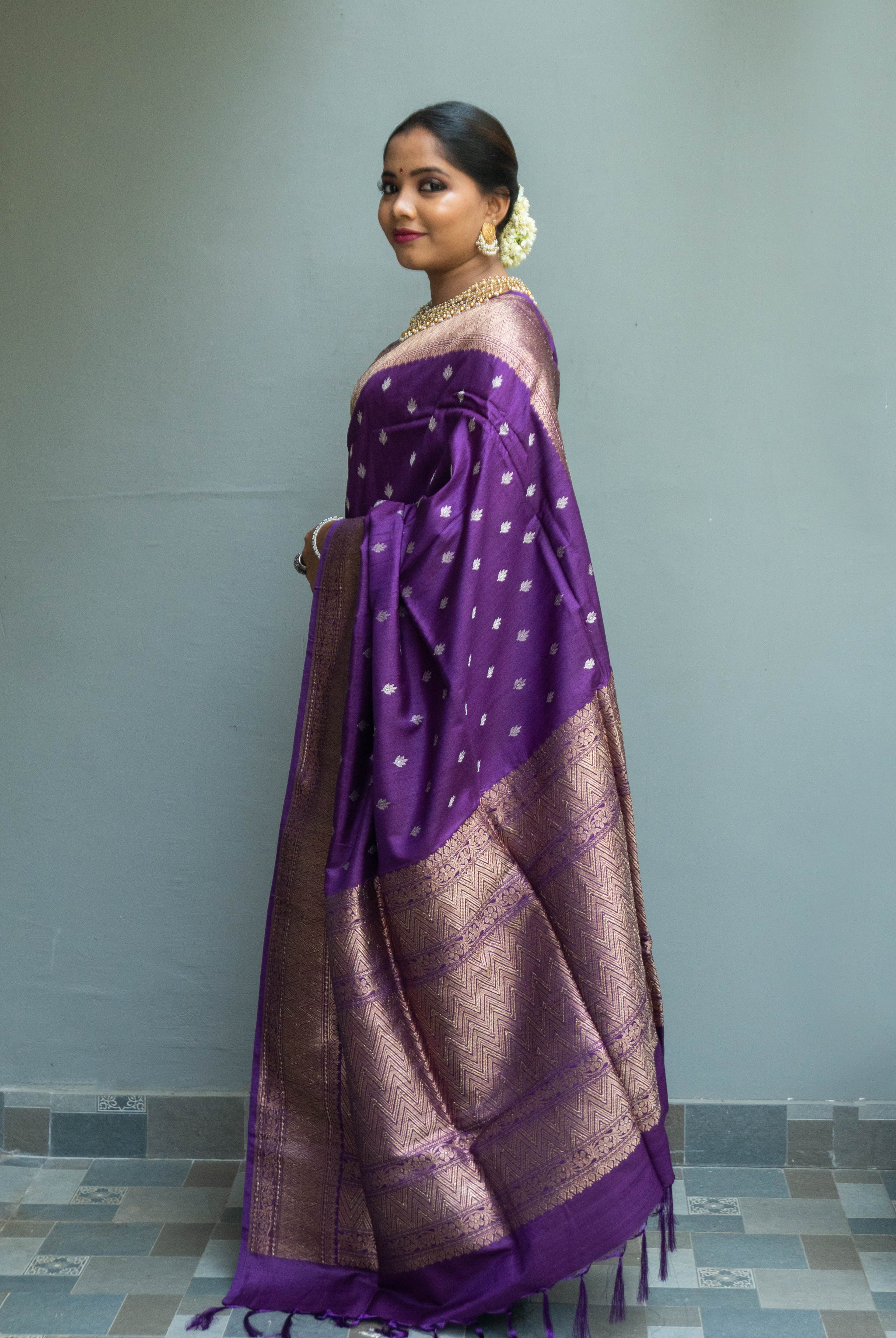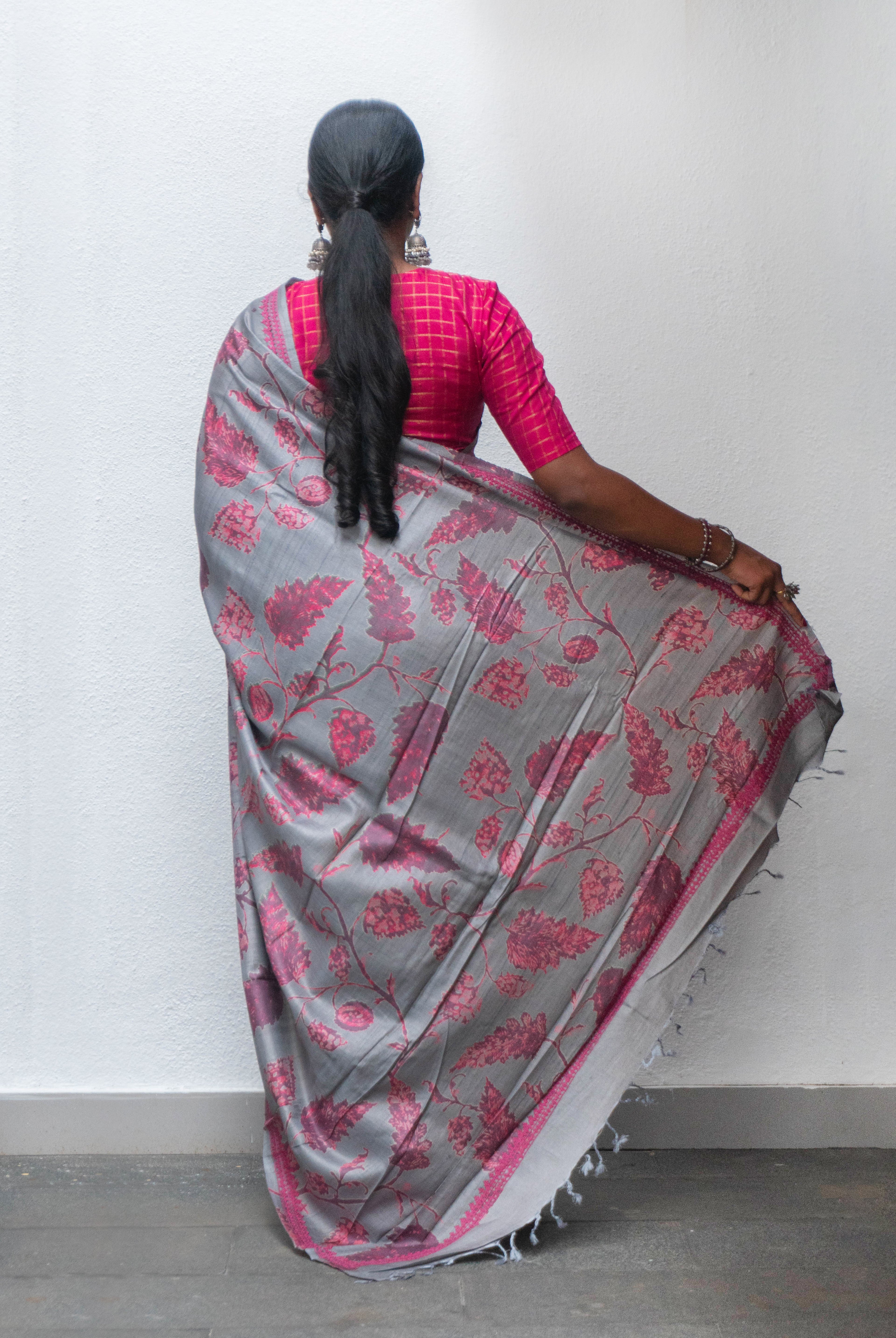 Perfect for festive occasions, weddings, and cultural celebrations, this floral tussar silk saree pairs effortlessly with traditional or contemporary blouses.