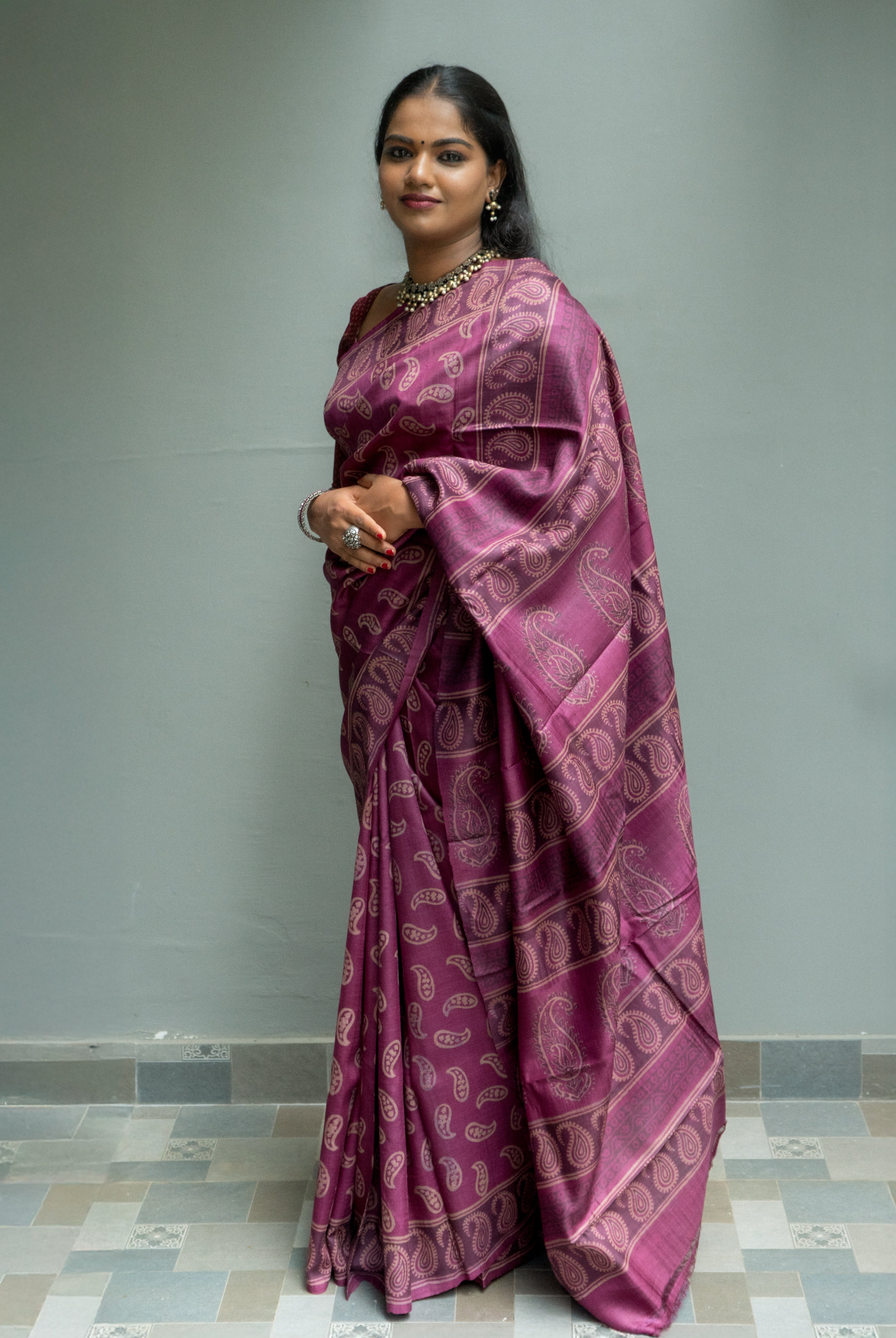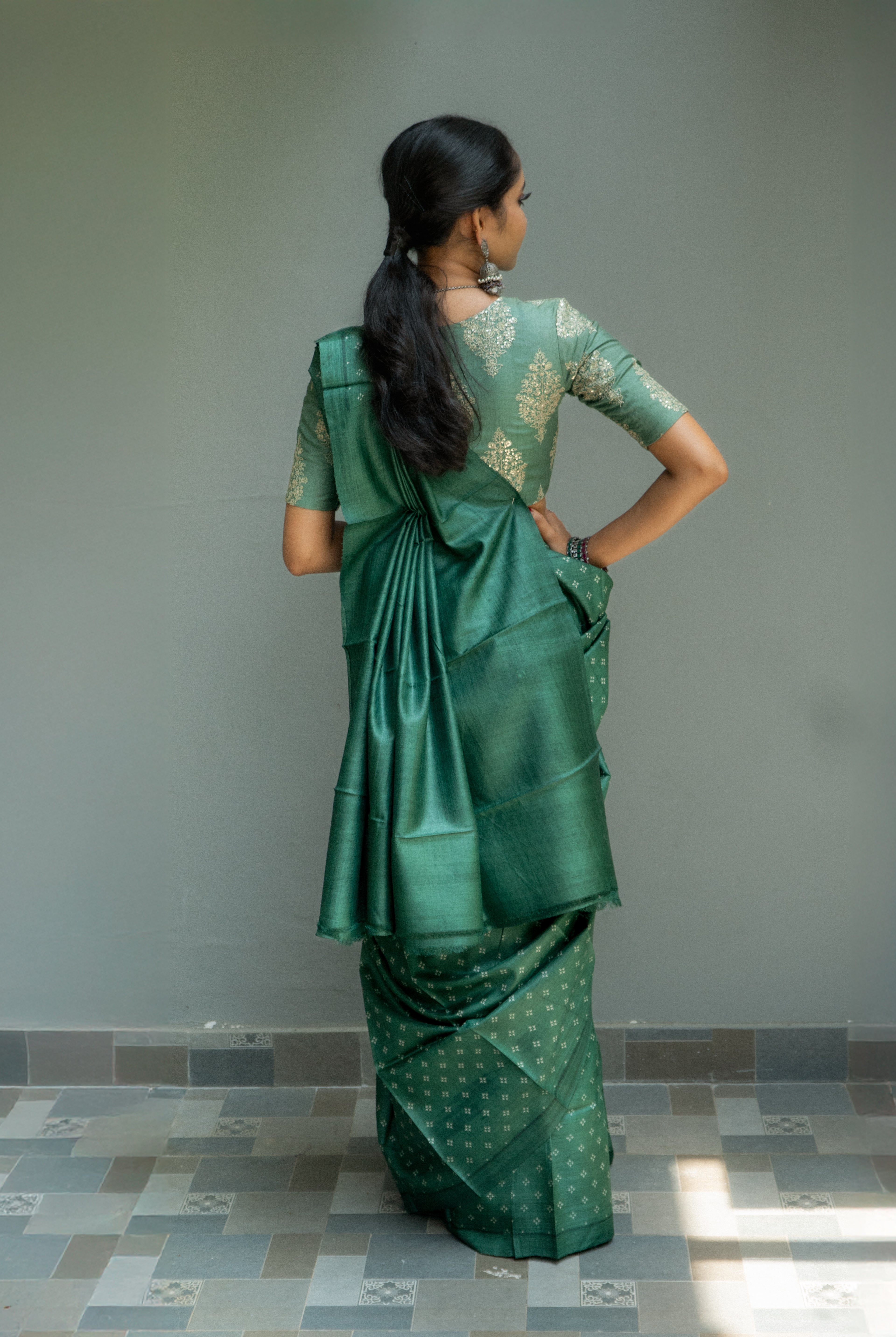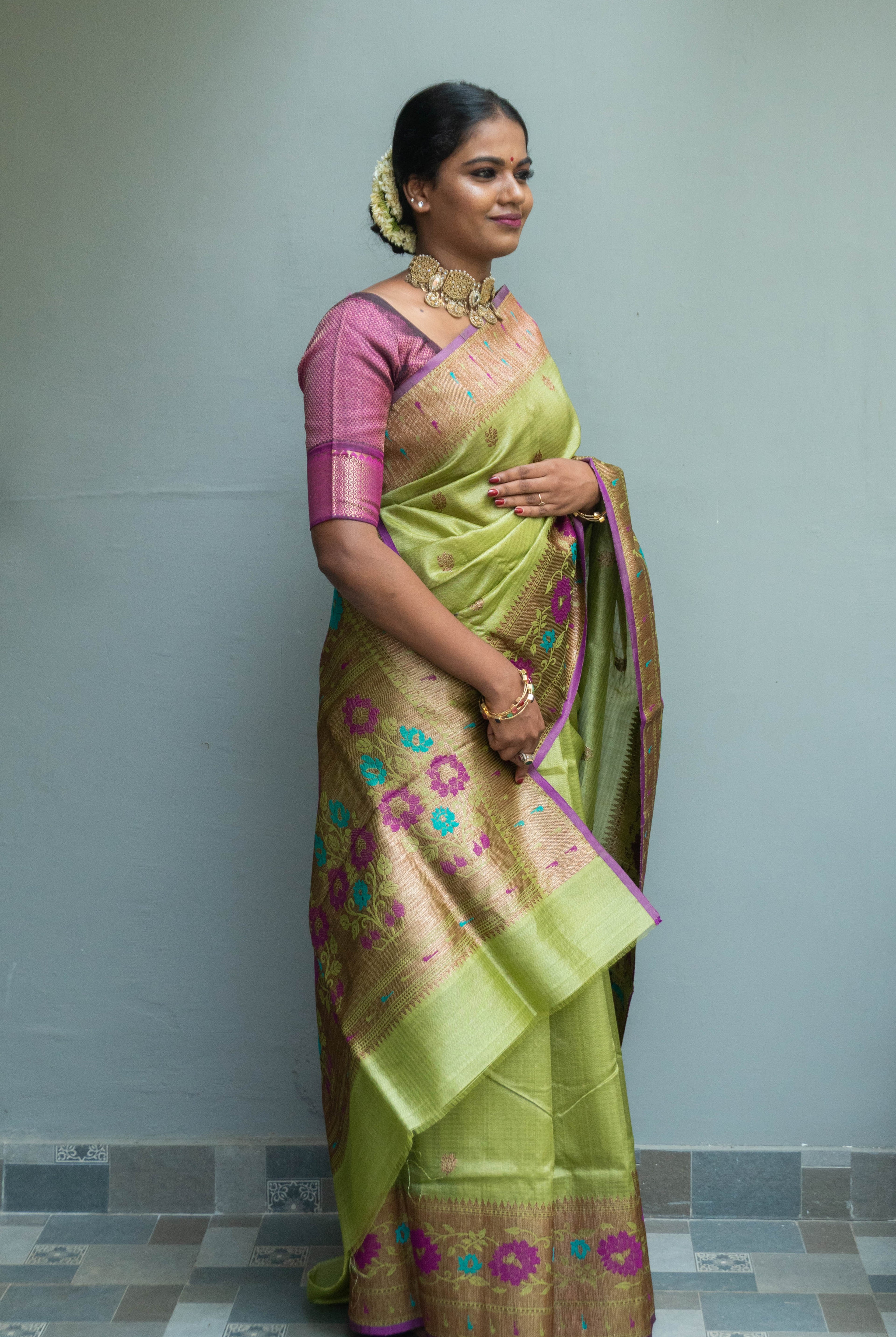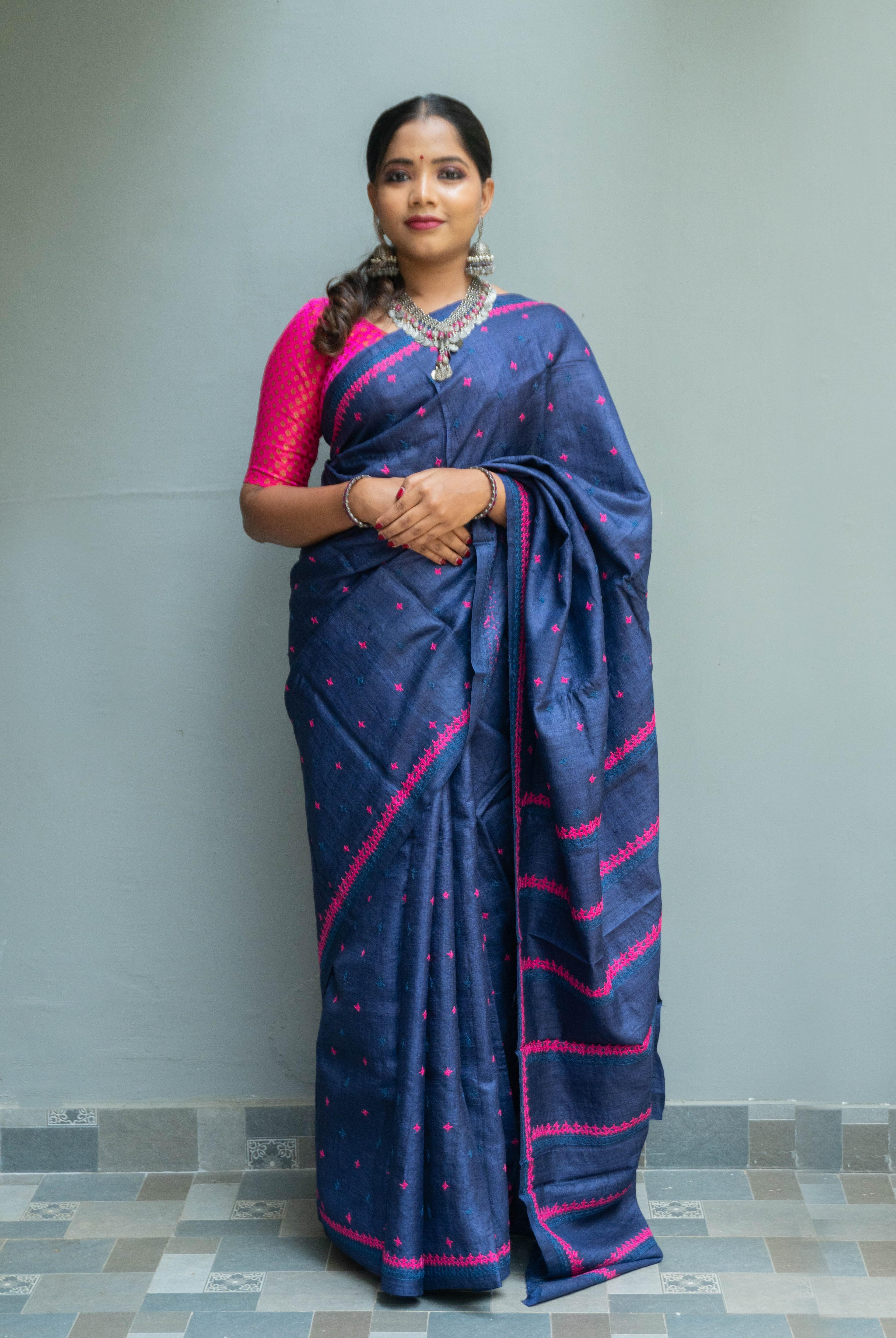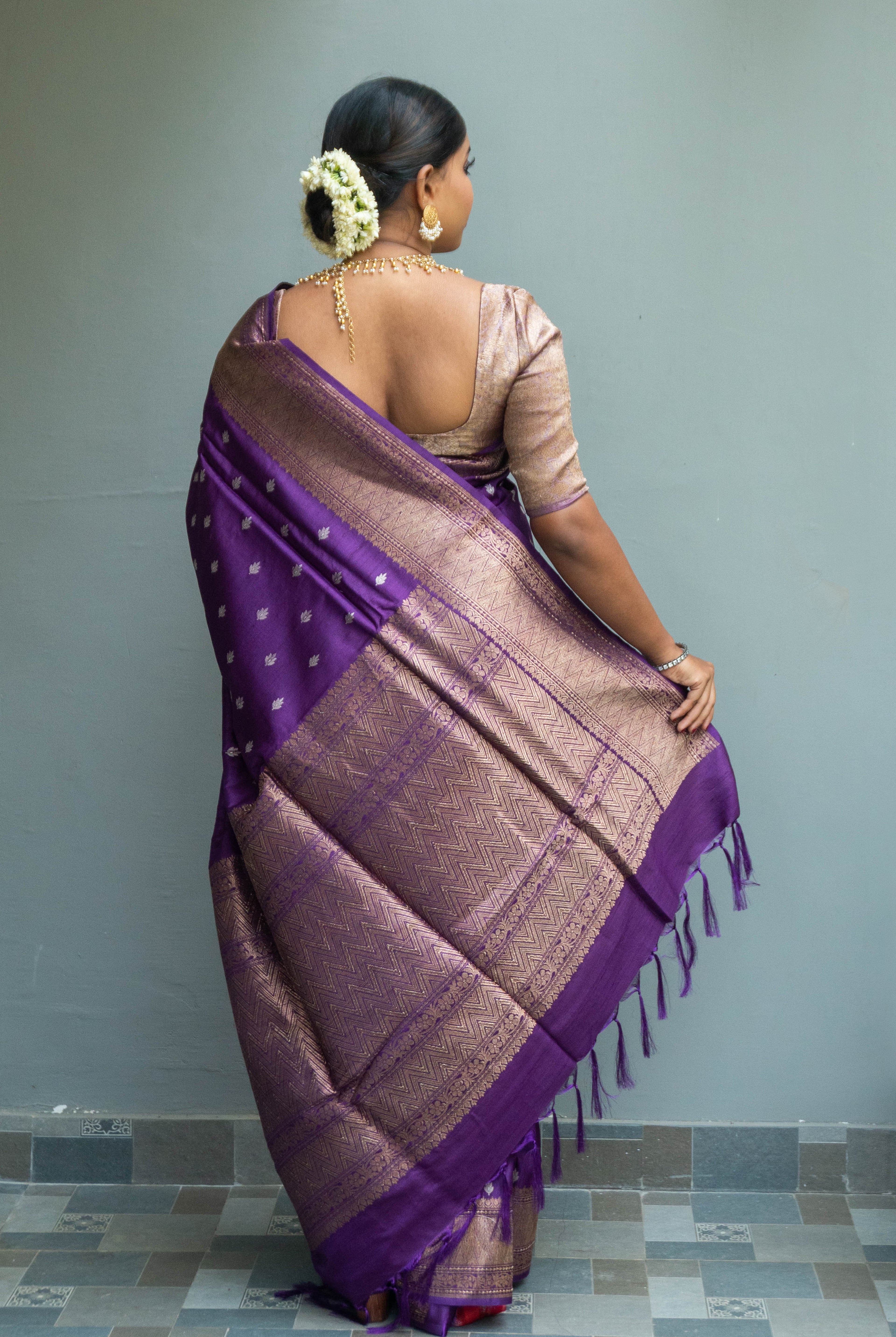 Perfect for festive occasions, weddings, and cultural celebrations, this floral tussar silk saree pairs effortlessly with traditional or contemporary blouses.