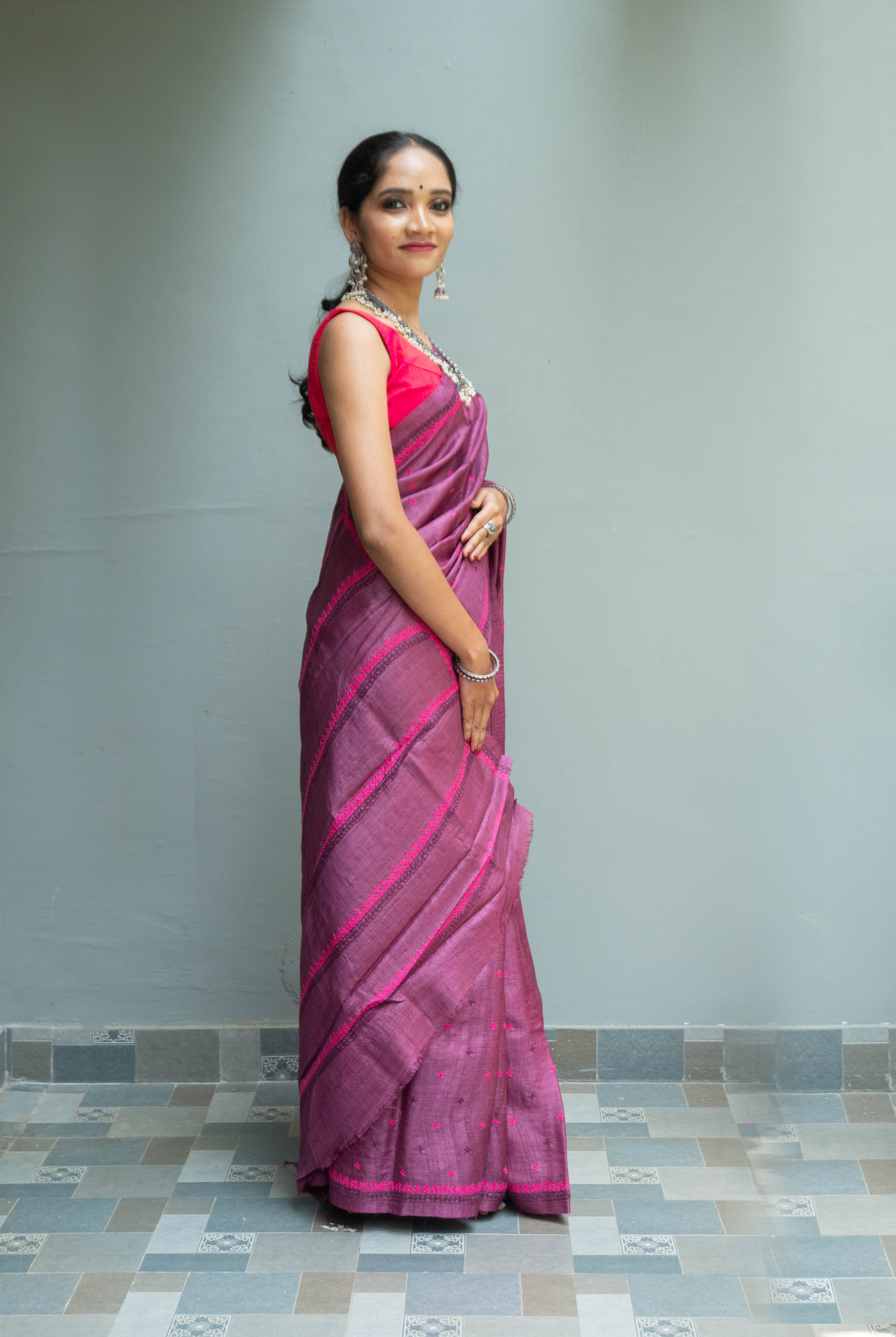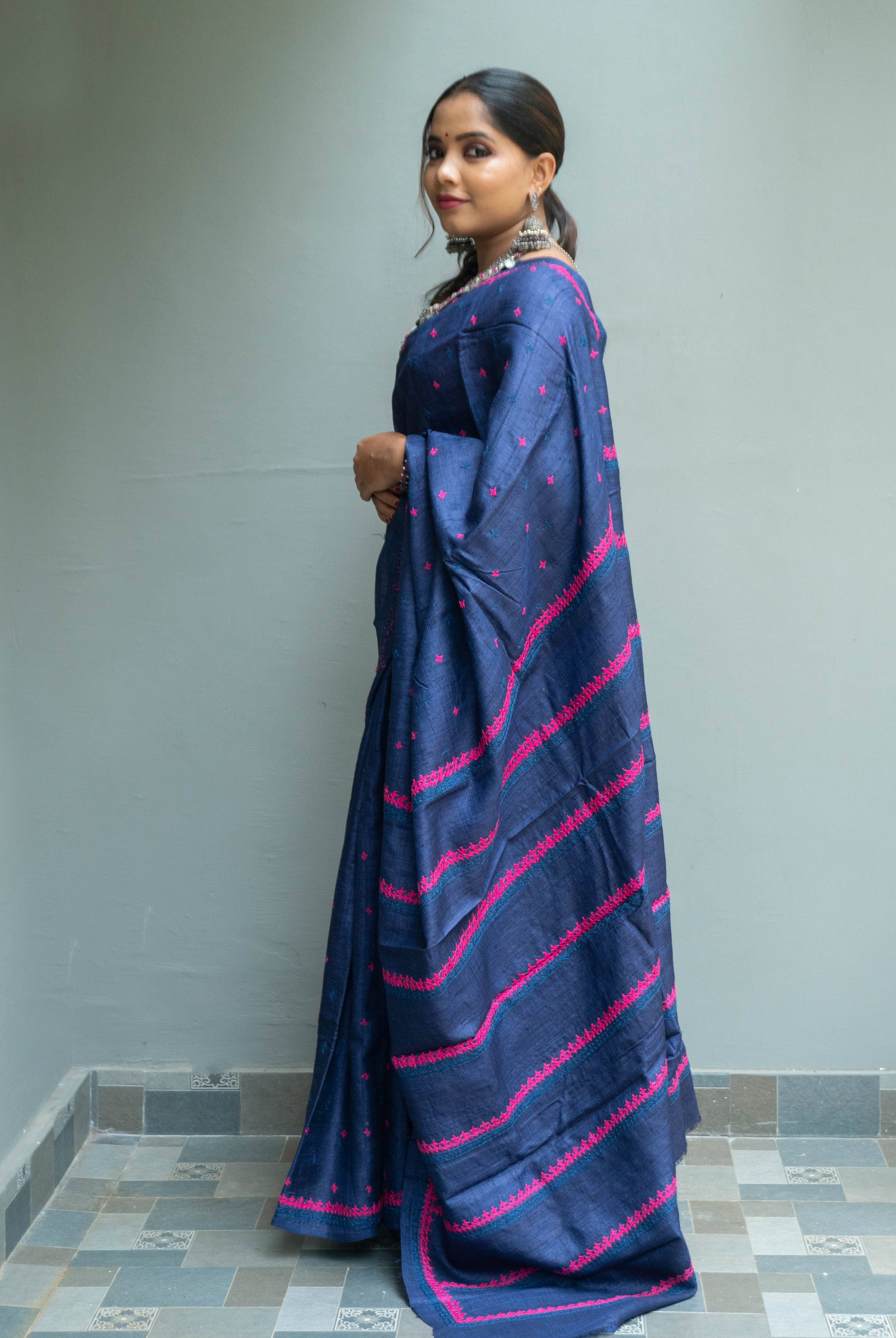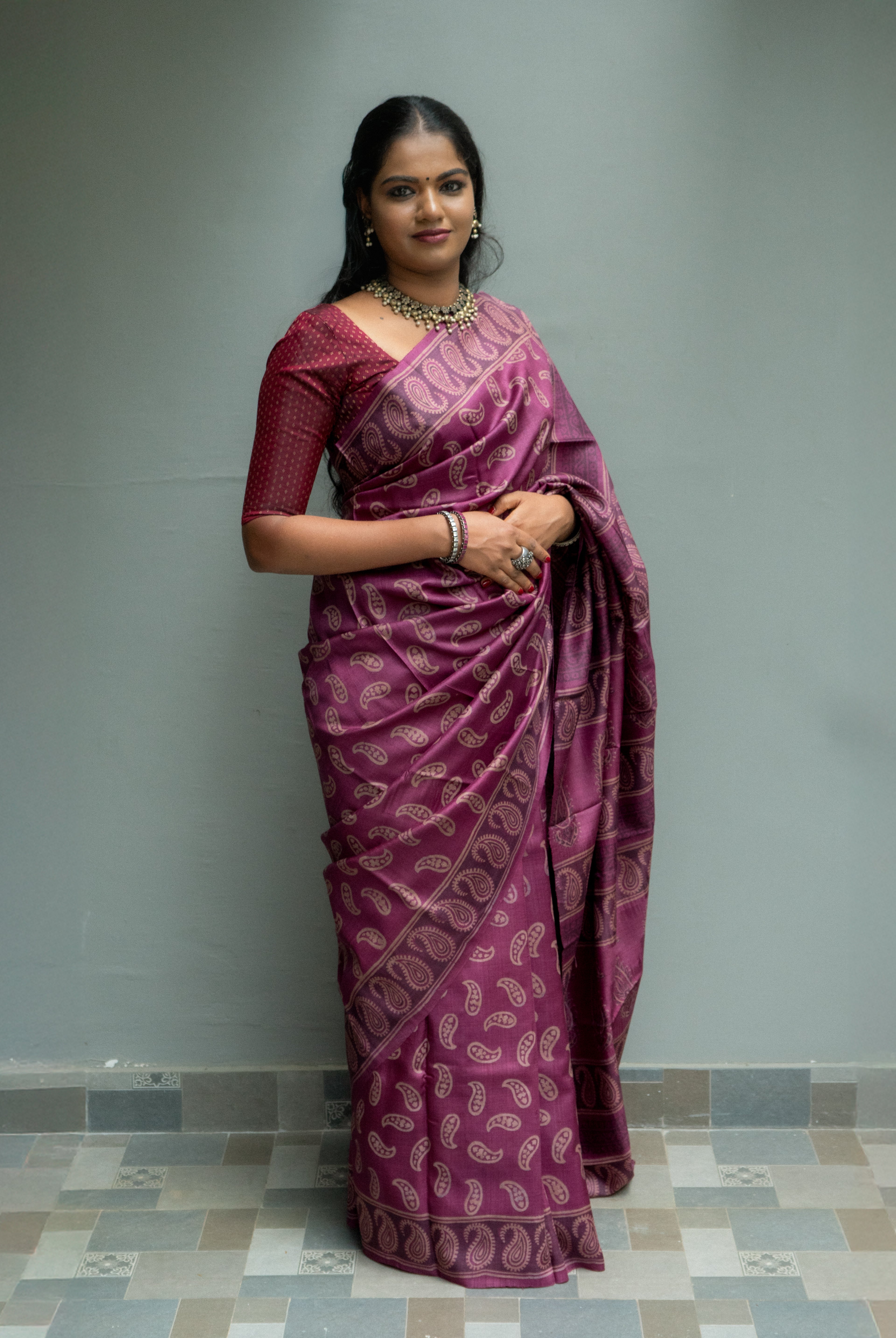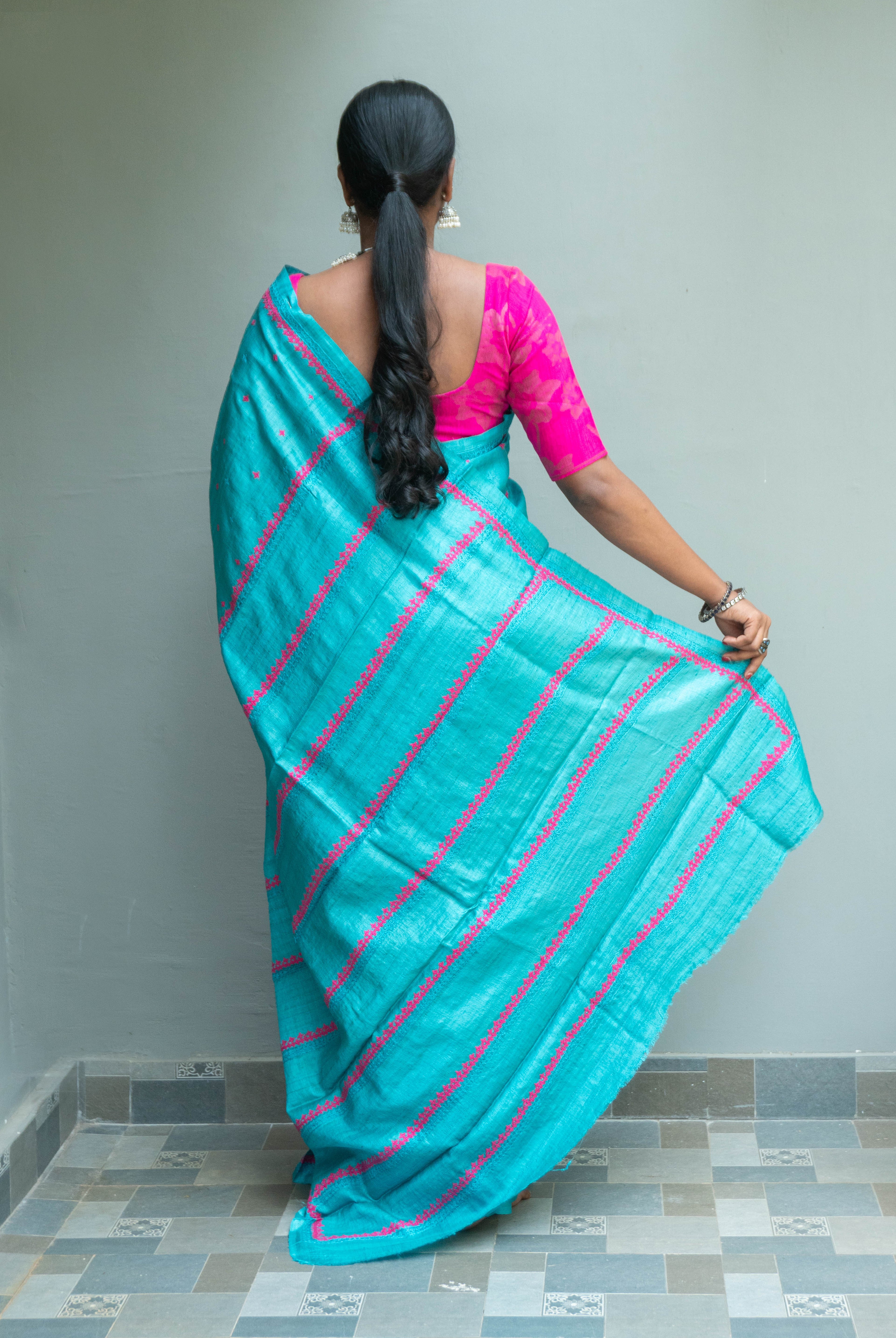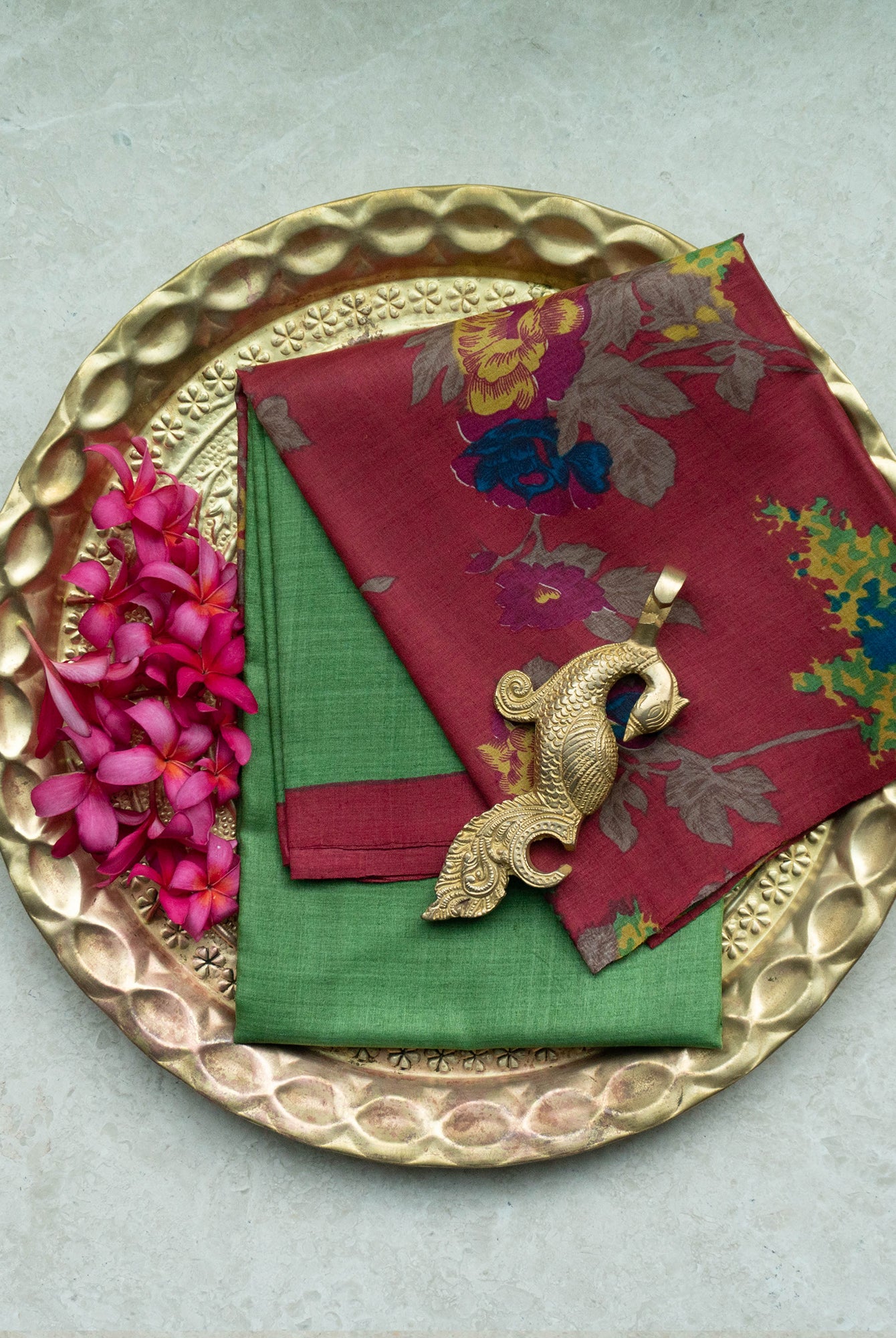 Perfect for festive occasions, weddings, and cultural celebrations, this floral tussar silk saree pairs effortlessly with traditional or contemporary blouses.