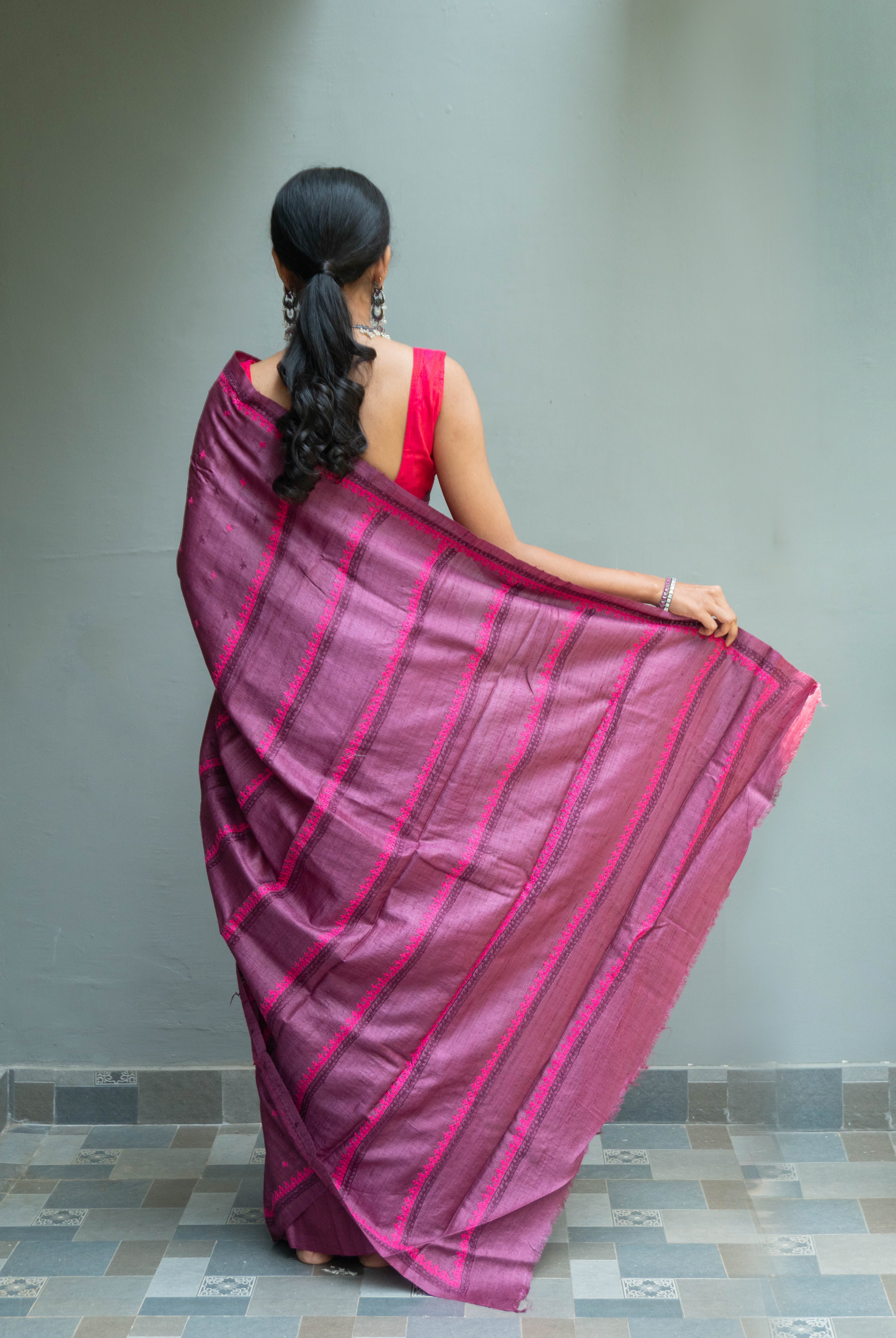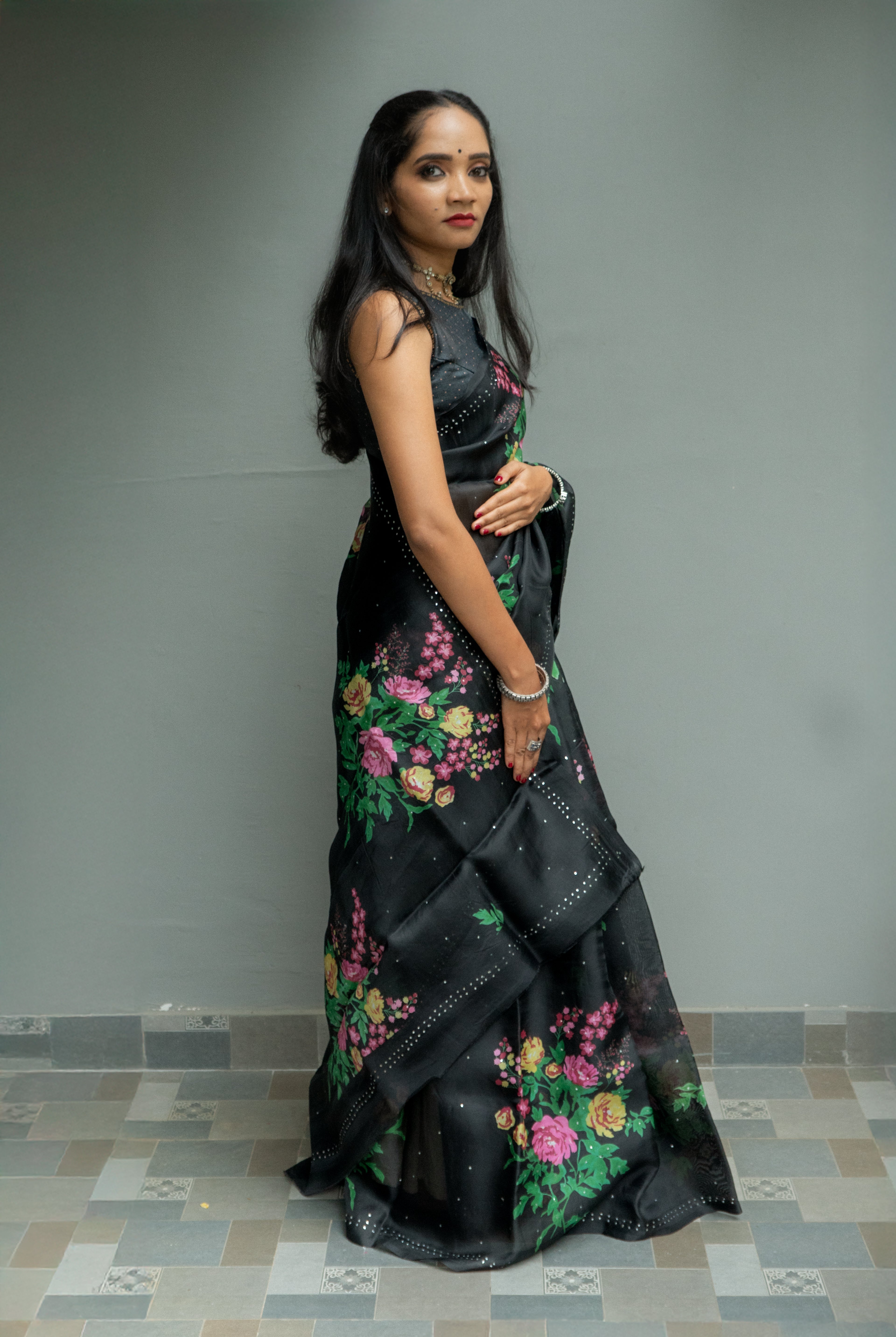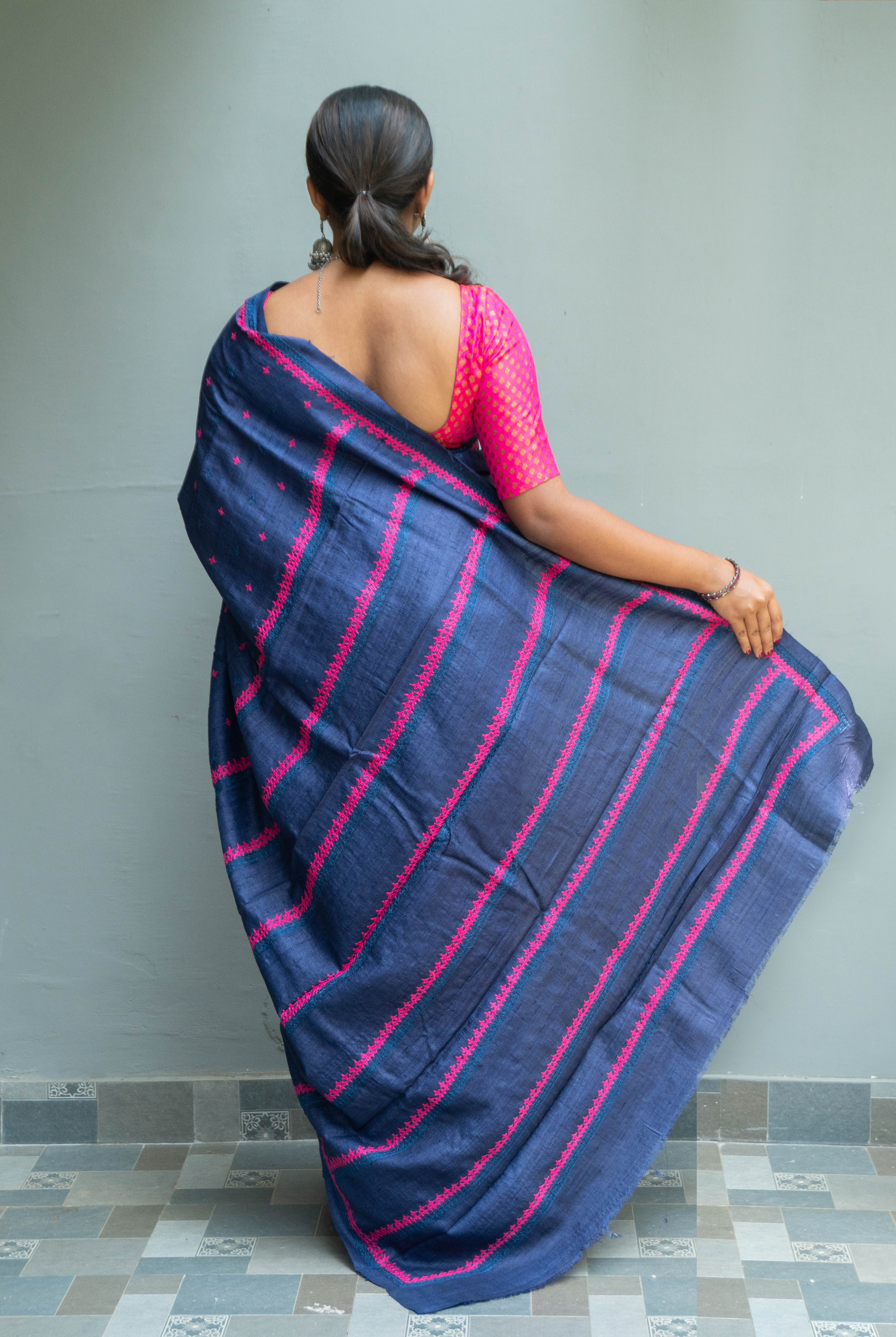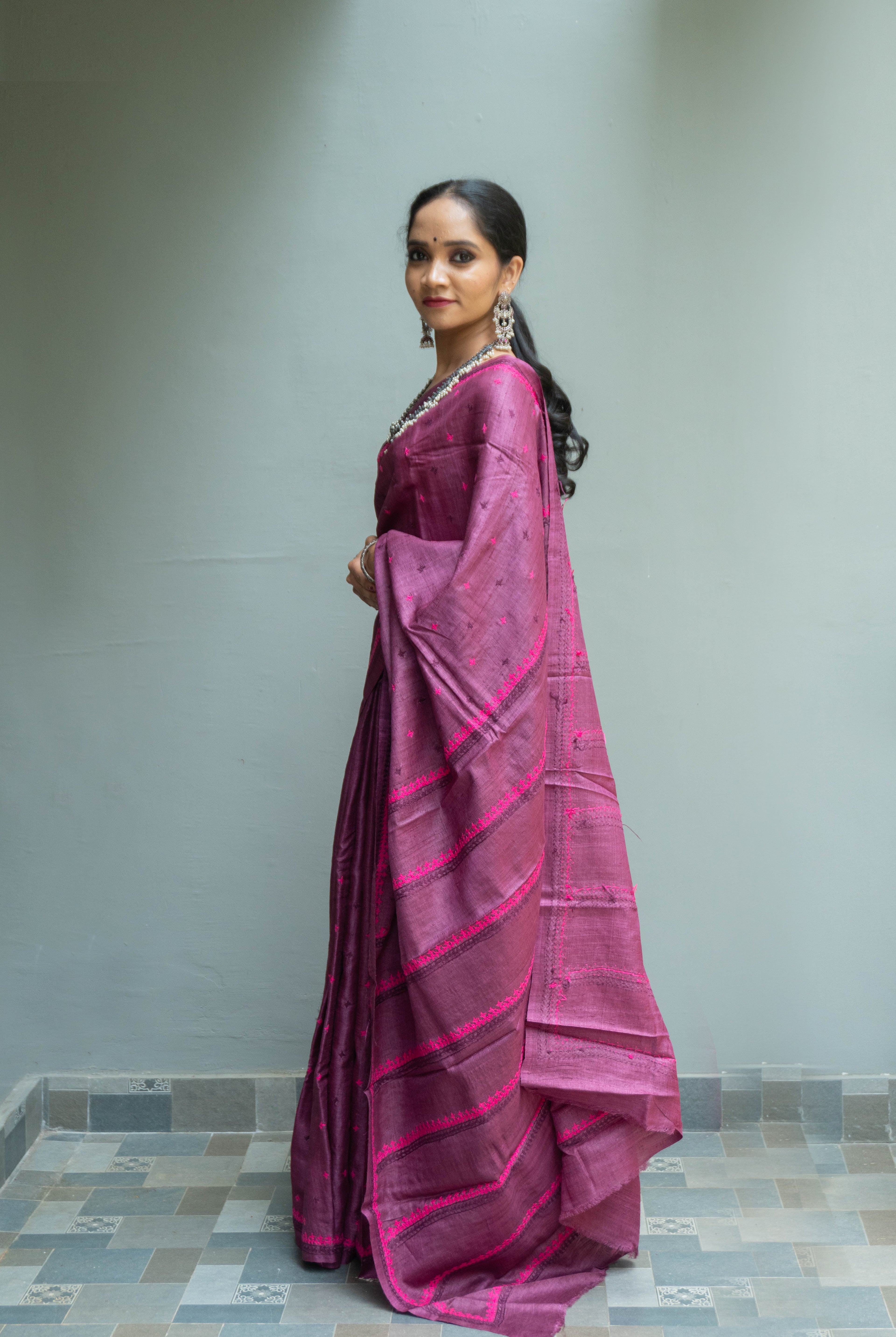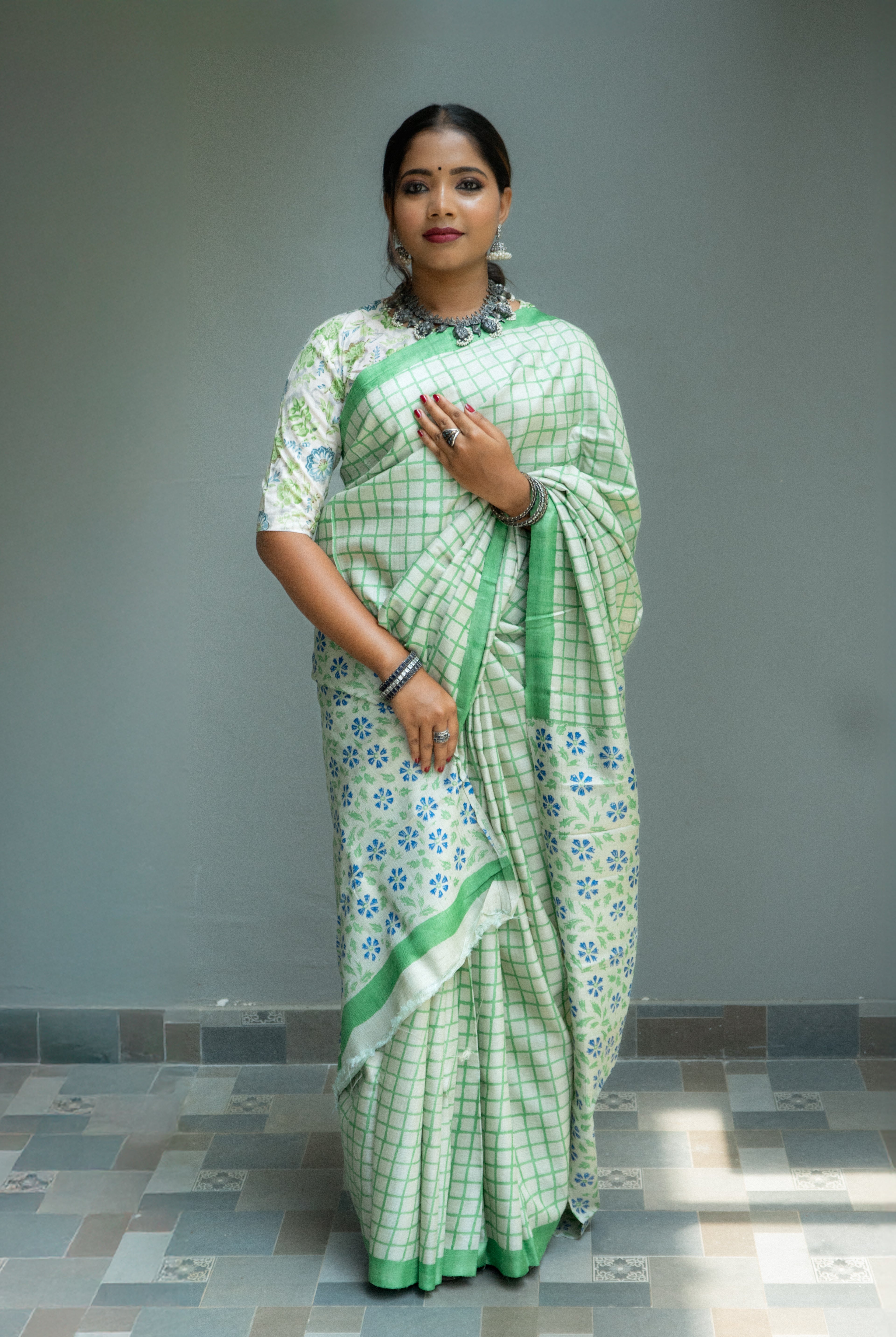 Perfect for festive occasions, weddings, and cultural celebrations, this floral tussar silk saree pairs effortlessly with traditional or contemporary blouses.