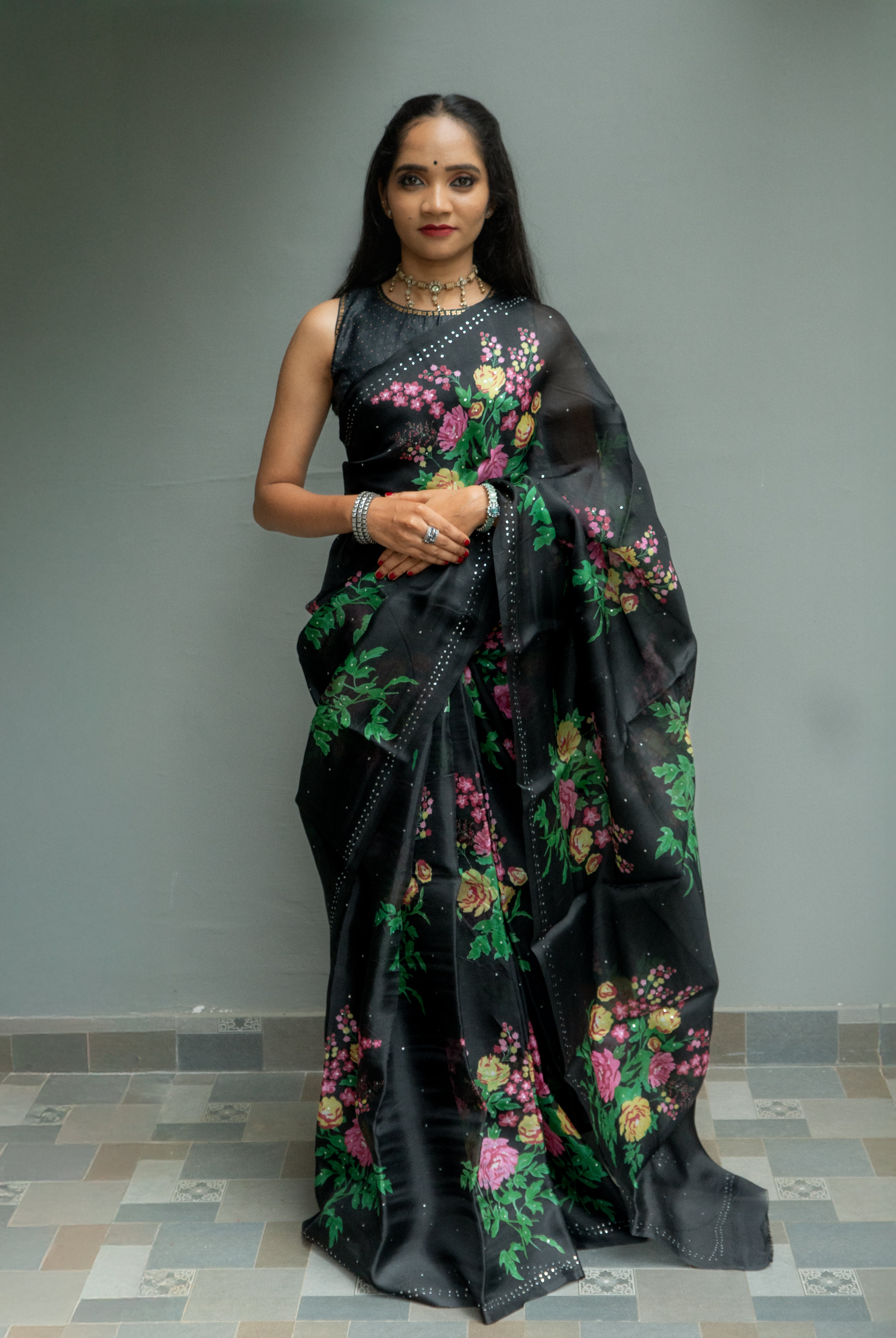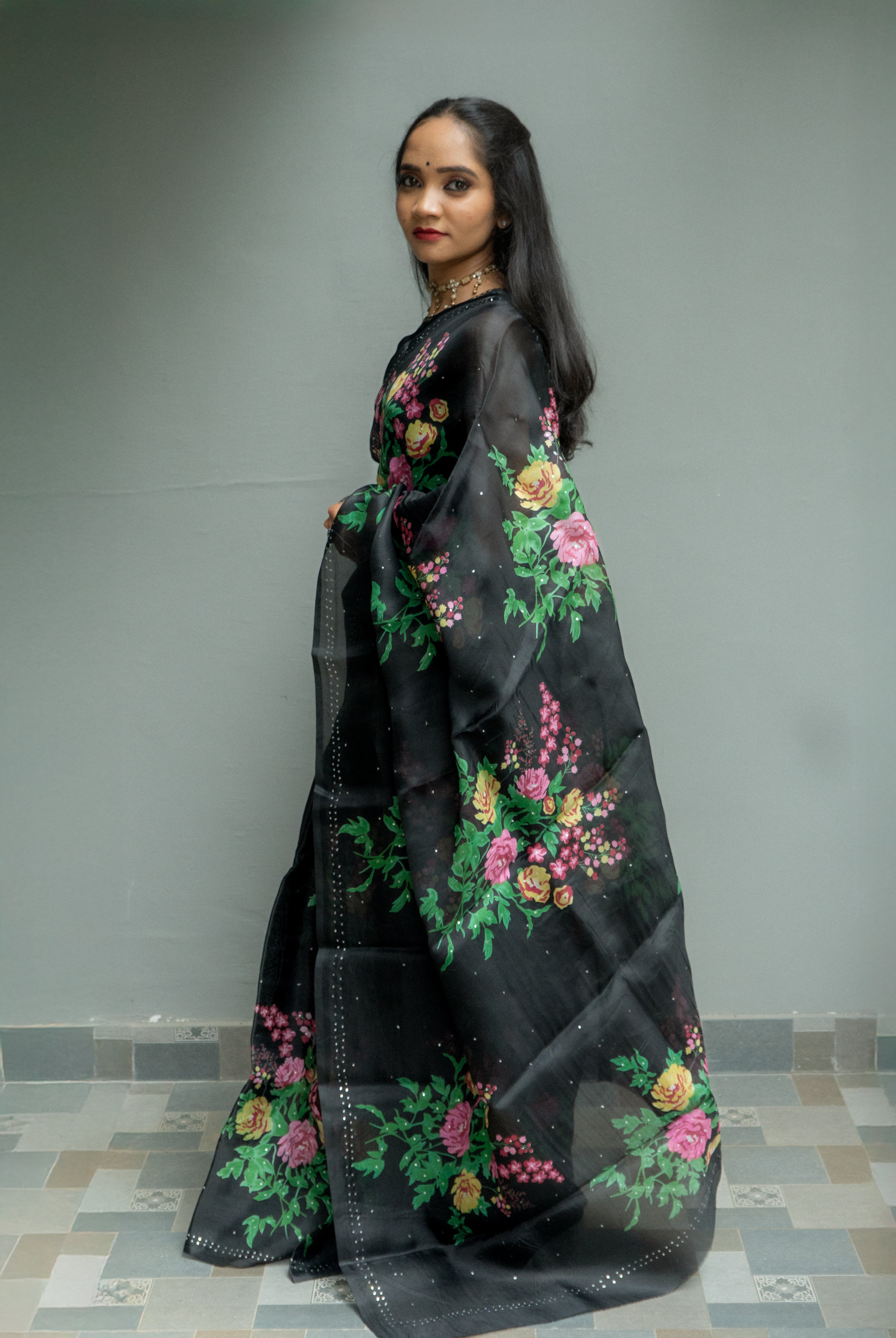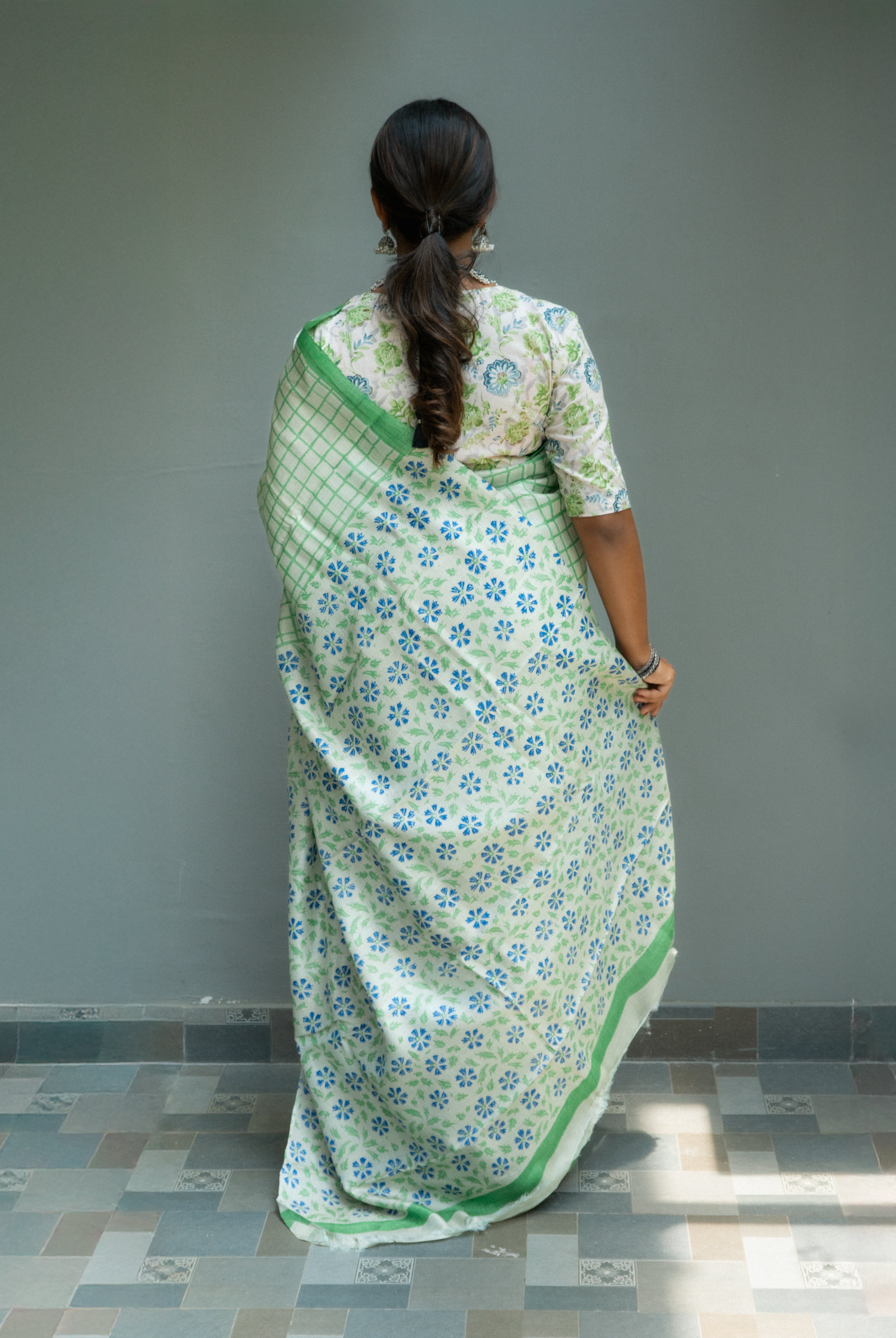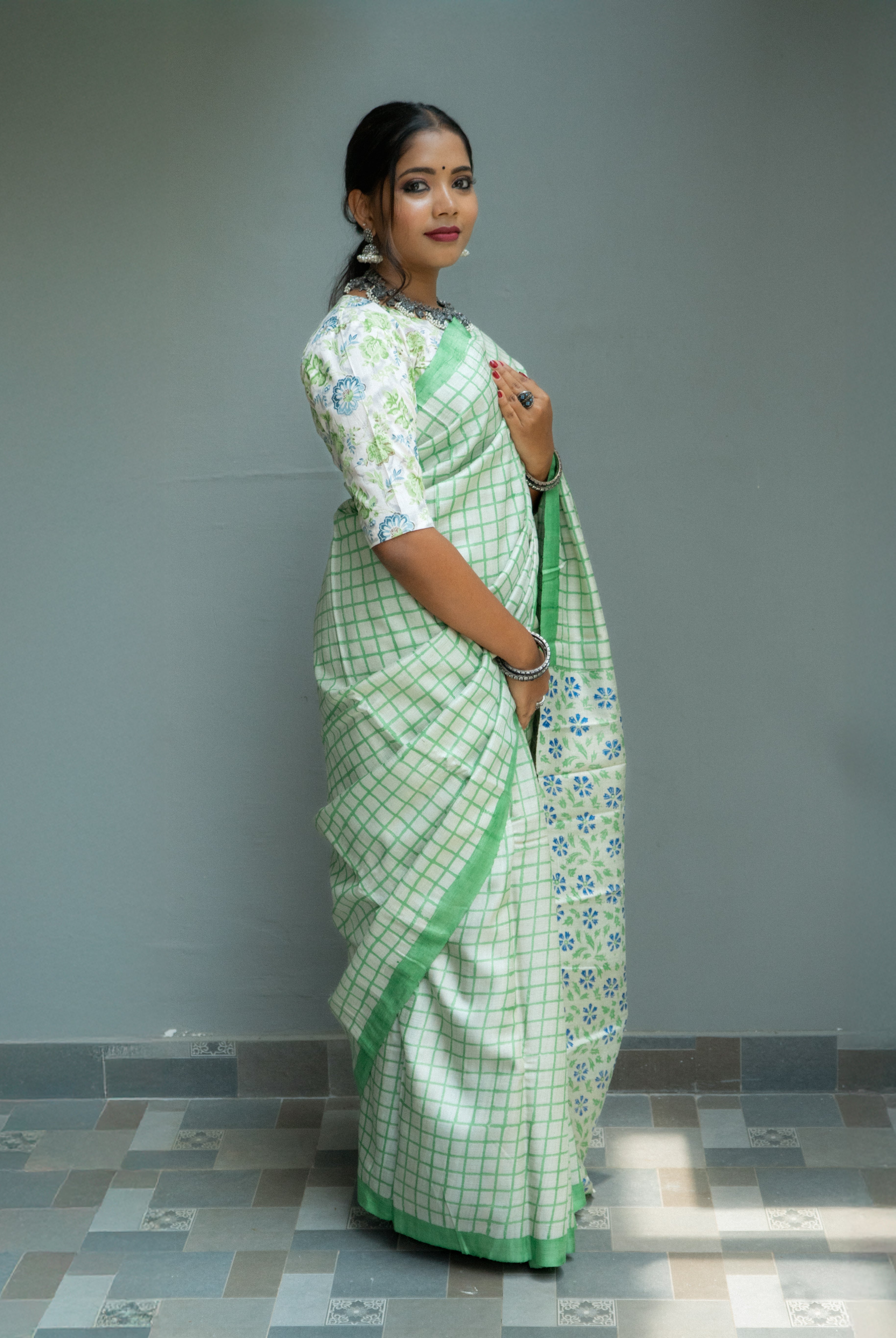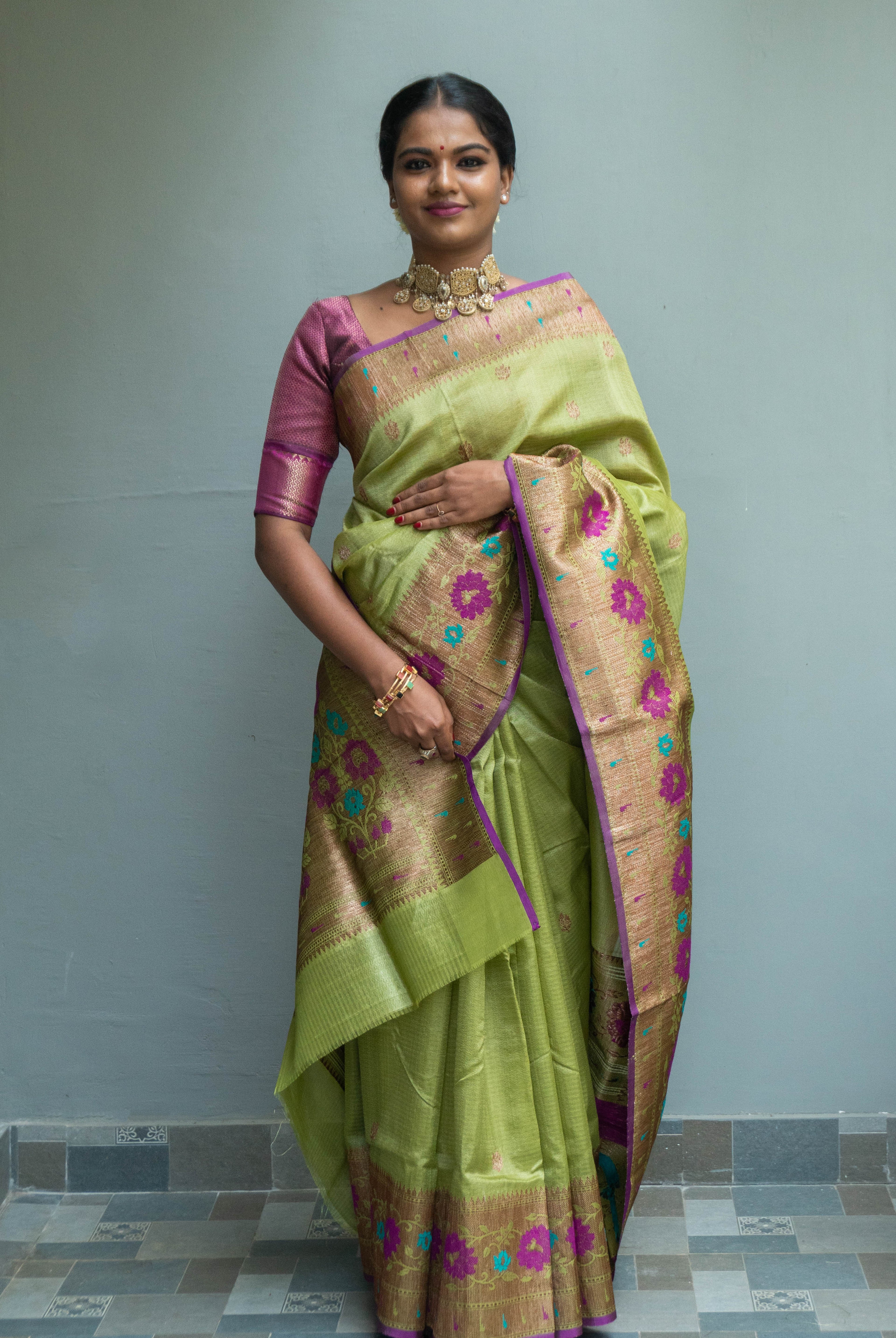 Perfect for festive occasions, weddings, and cultural celebrations, this floral tussar silk saree pairs effortlessly with traditional or contemporary blouses.