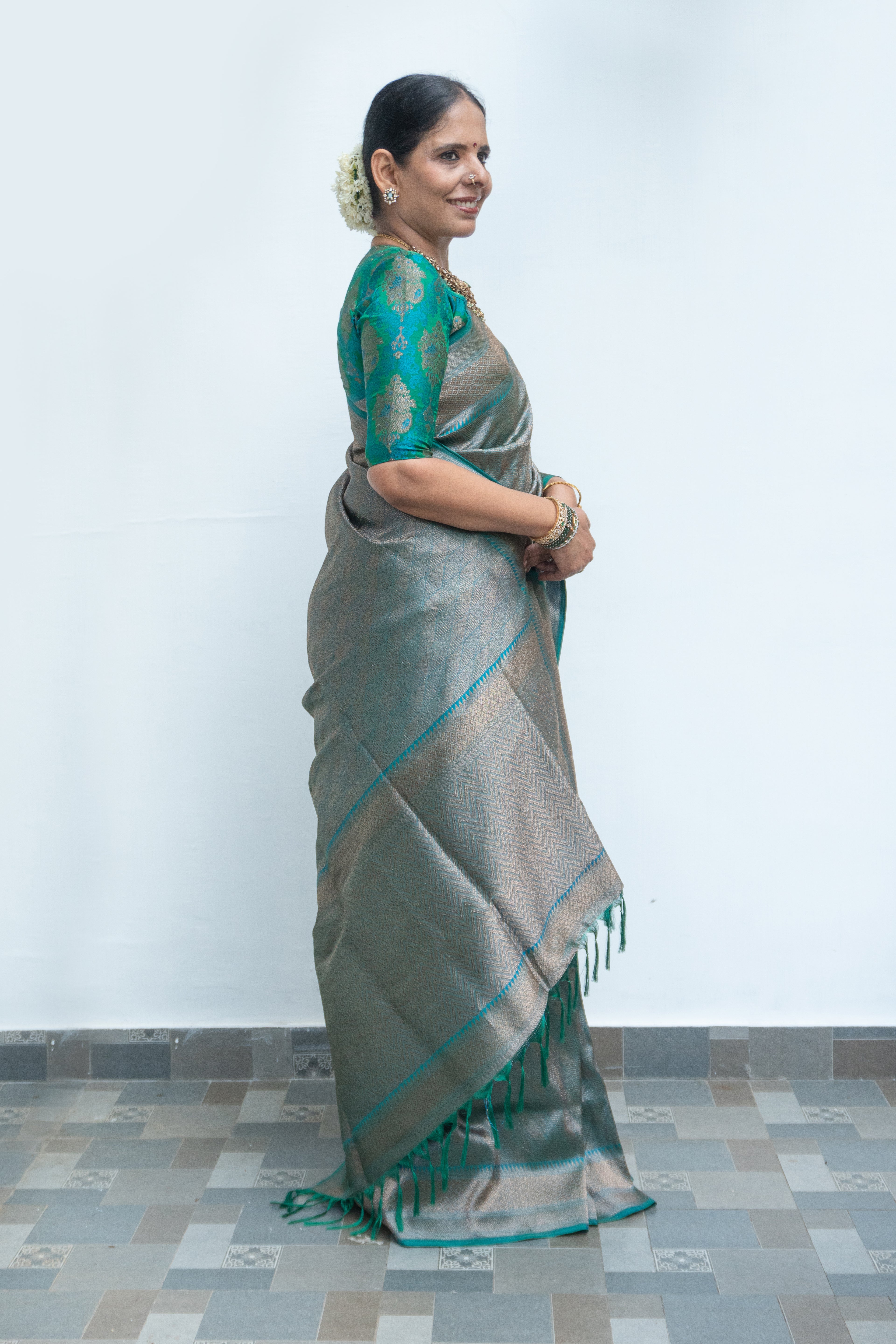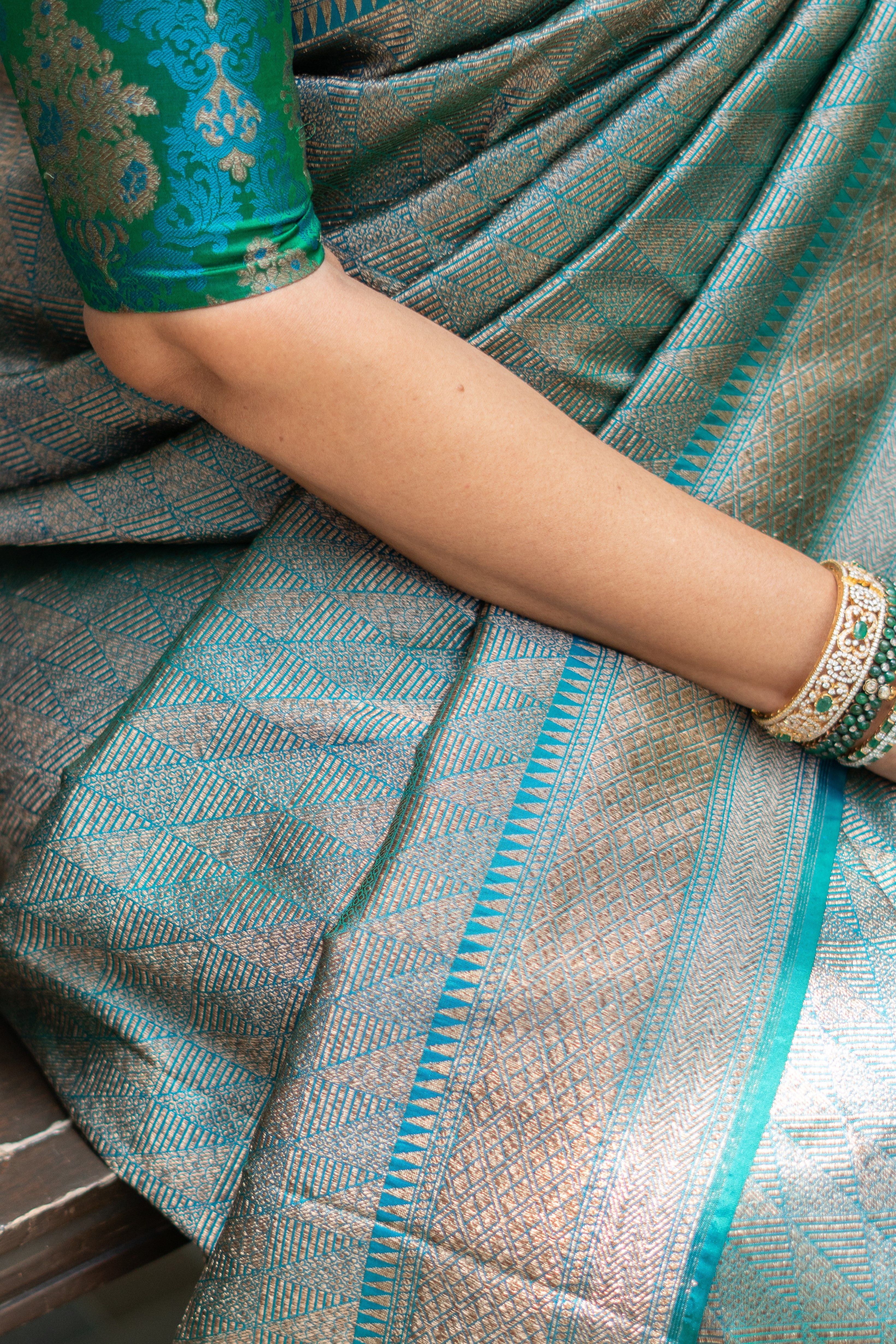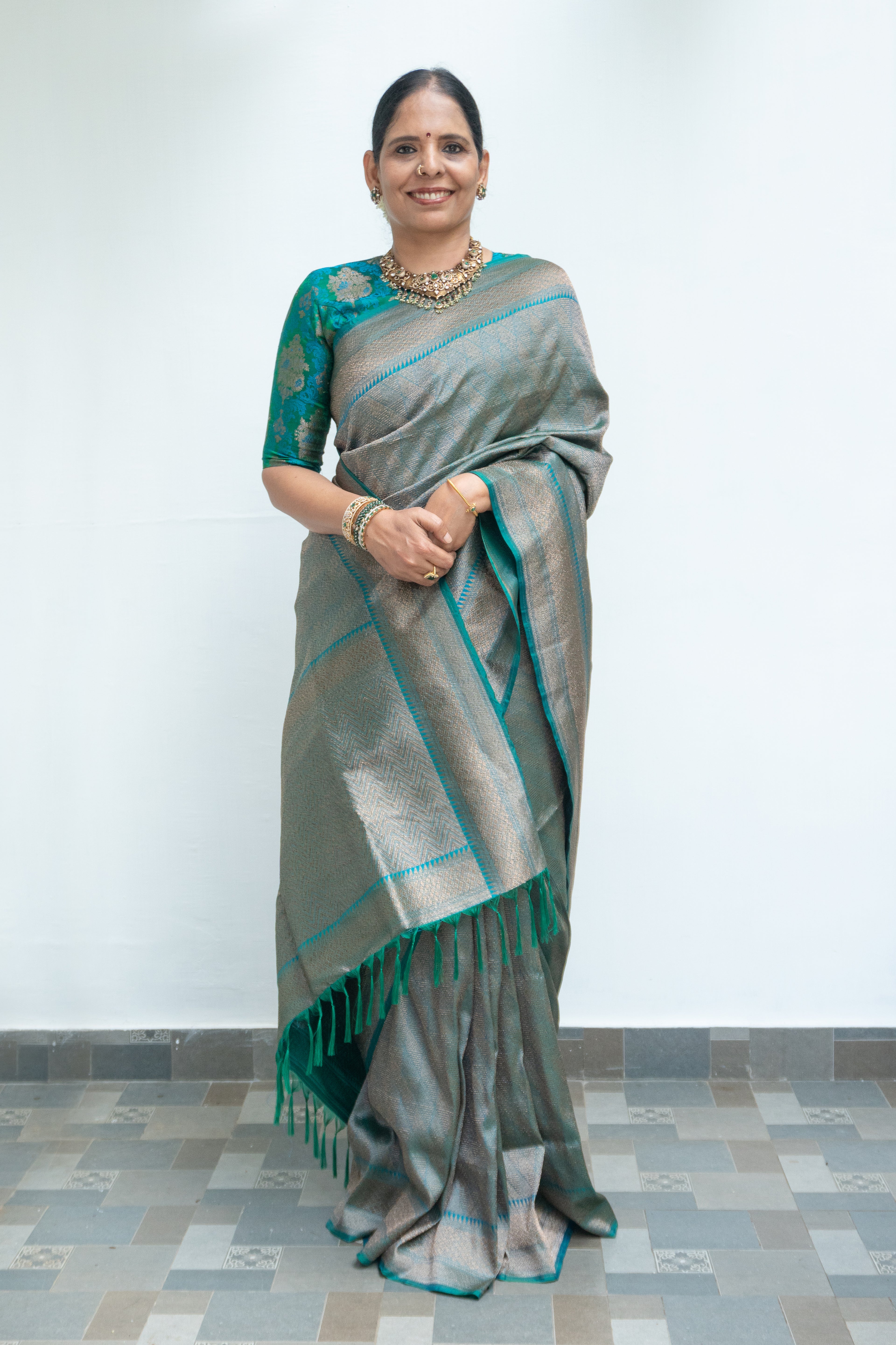 Teal Banarasi Silk Saree with Intricate Zari Brocade