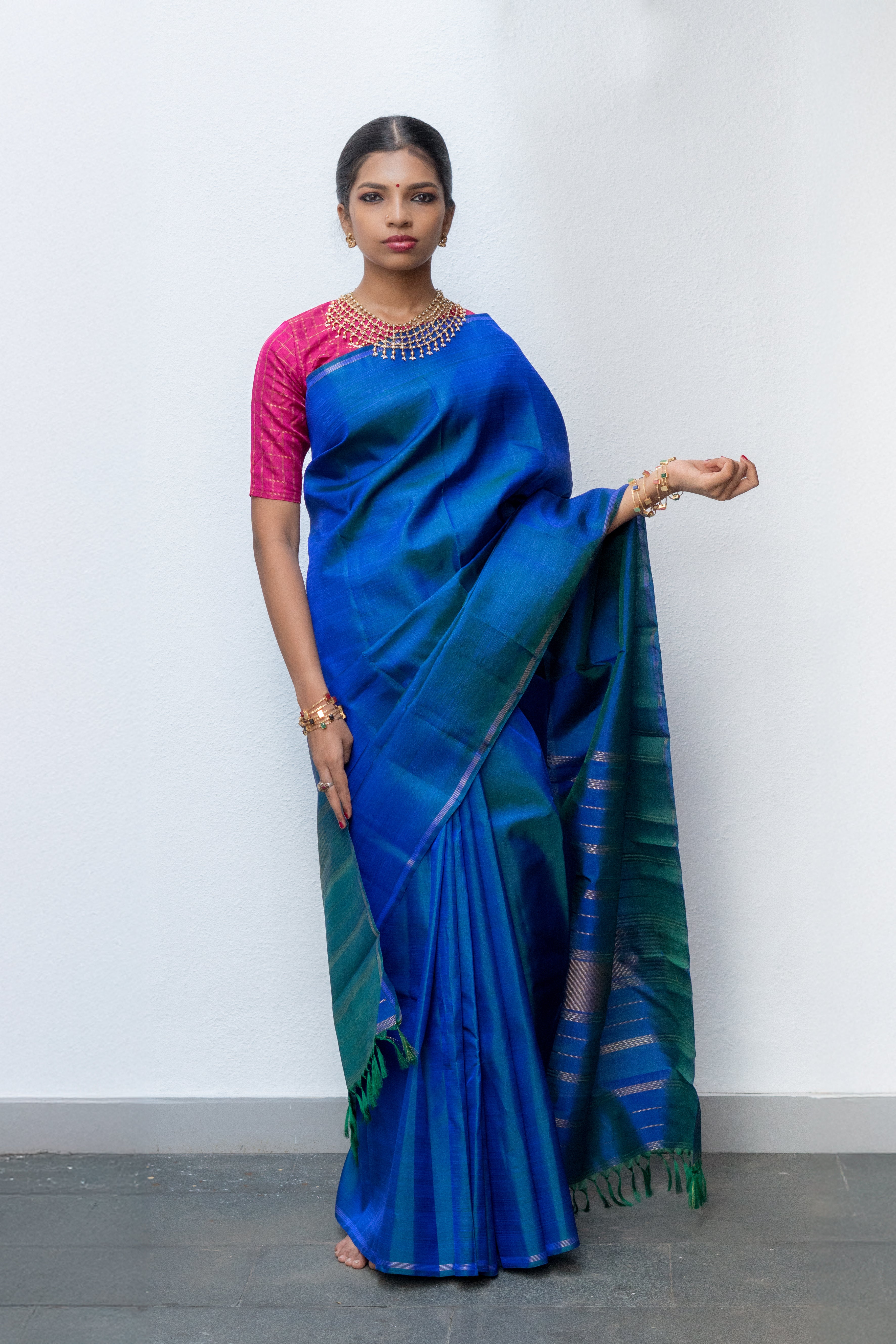 The blouse styled with each saree is from our exclusive in-house collection and may differ from the blouse piece provided with the saree.