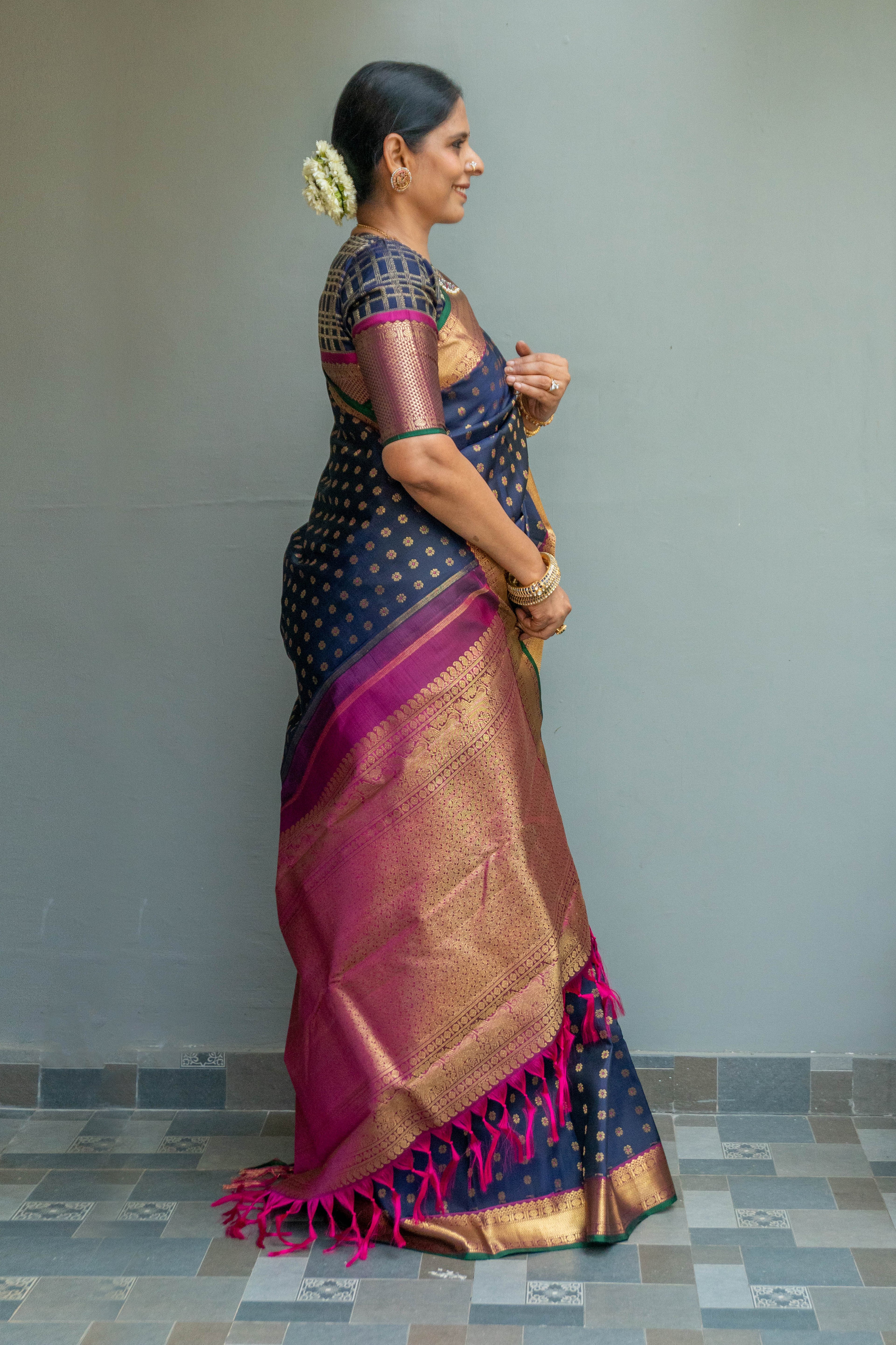 Navy Blue Kanjivaram Silk Saree