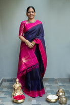 The blouse styled with each saree is from our exclusive in-house collection and may differ from the blouse piece provided with the saree.