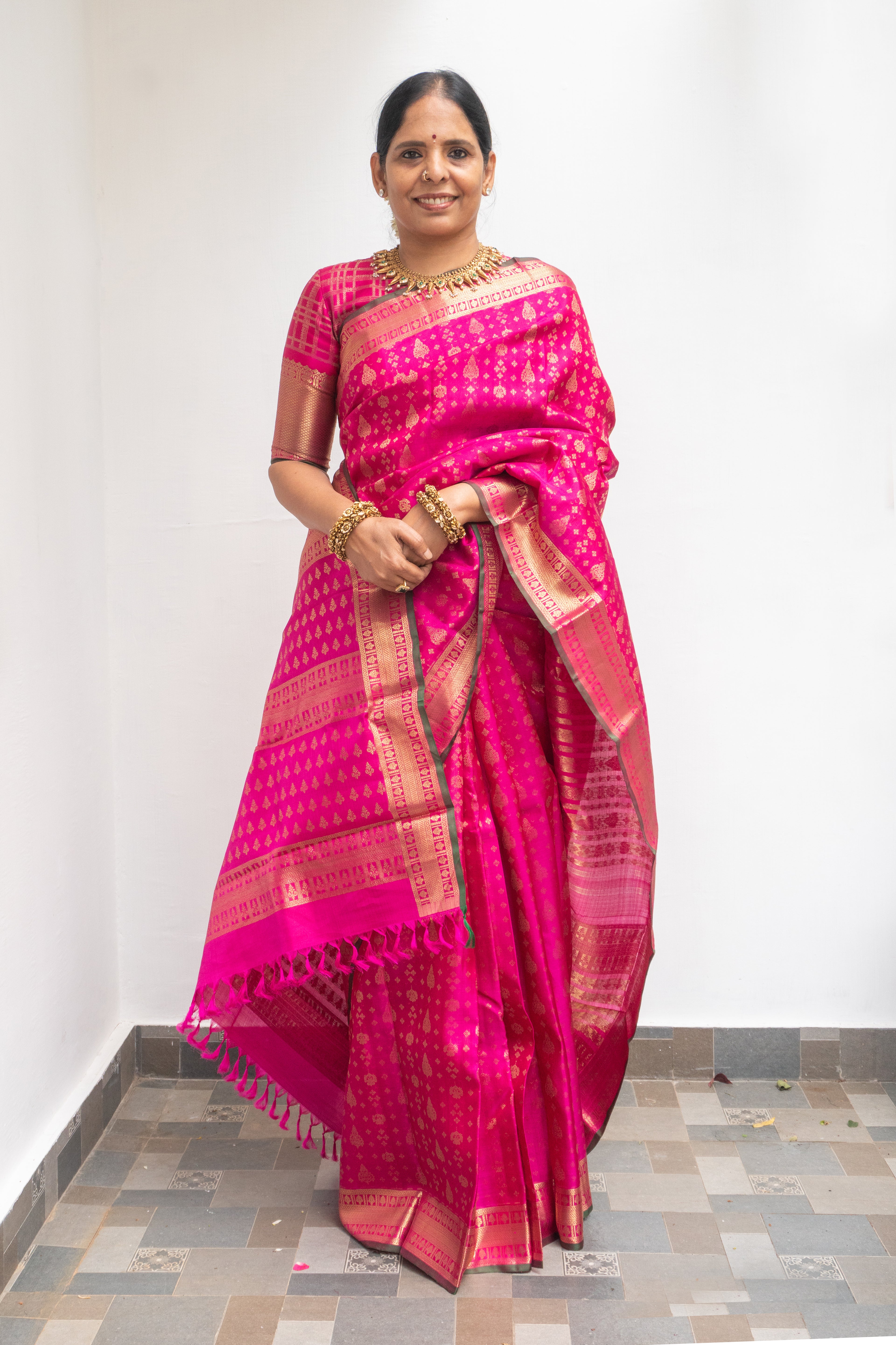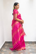 Rani Pink Kanjivaram Silk Saree with Gold Zari Border