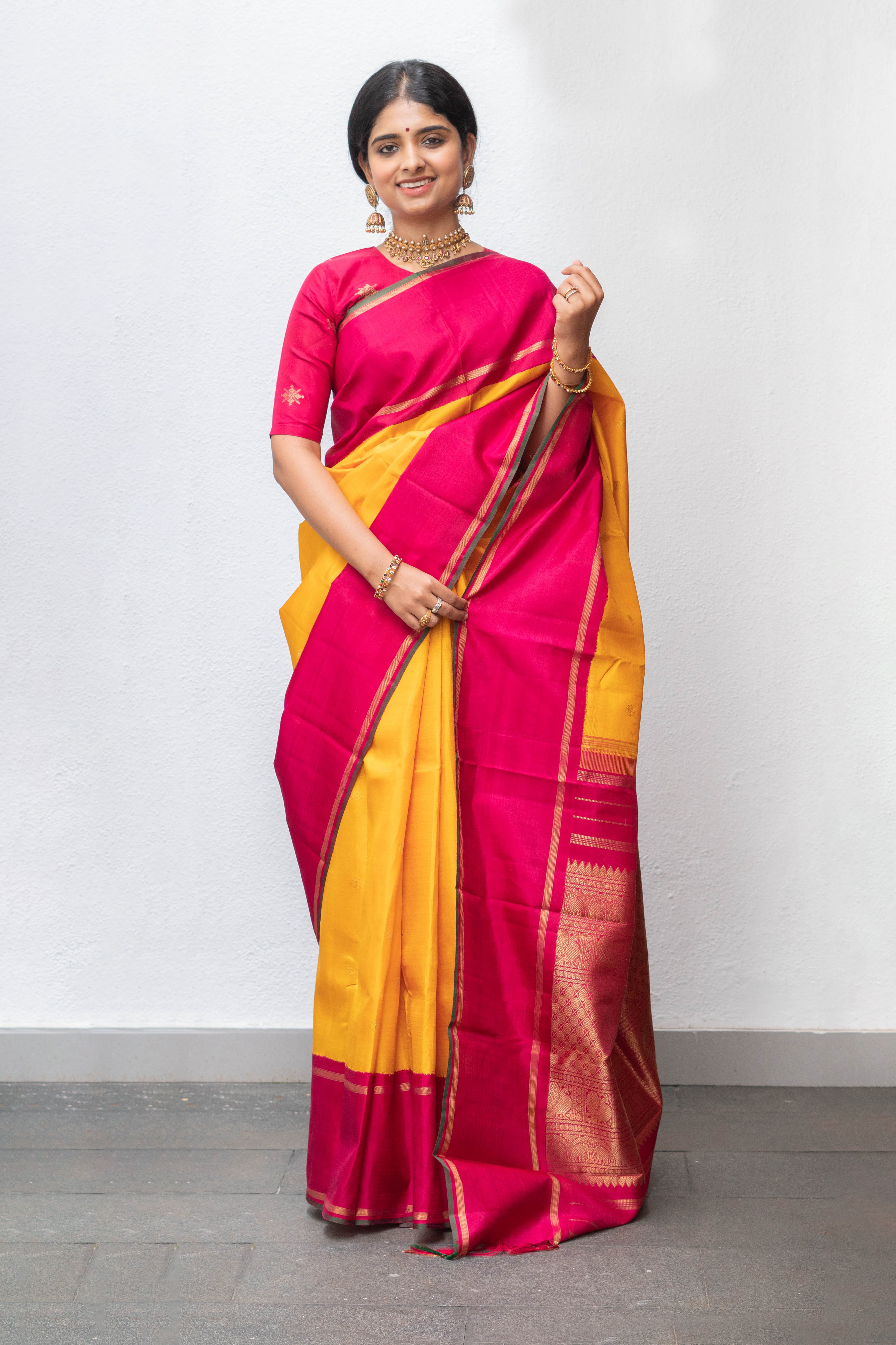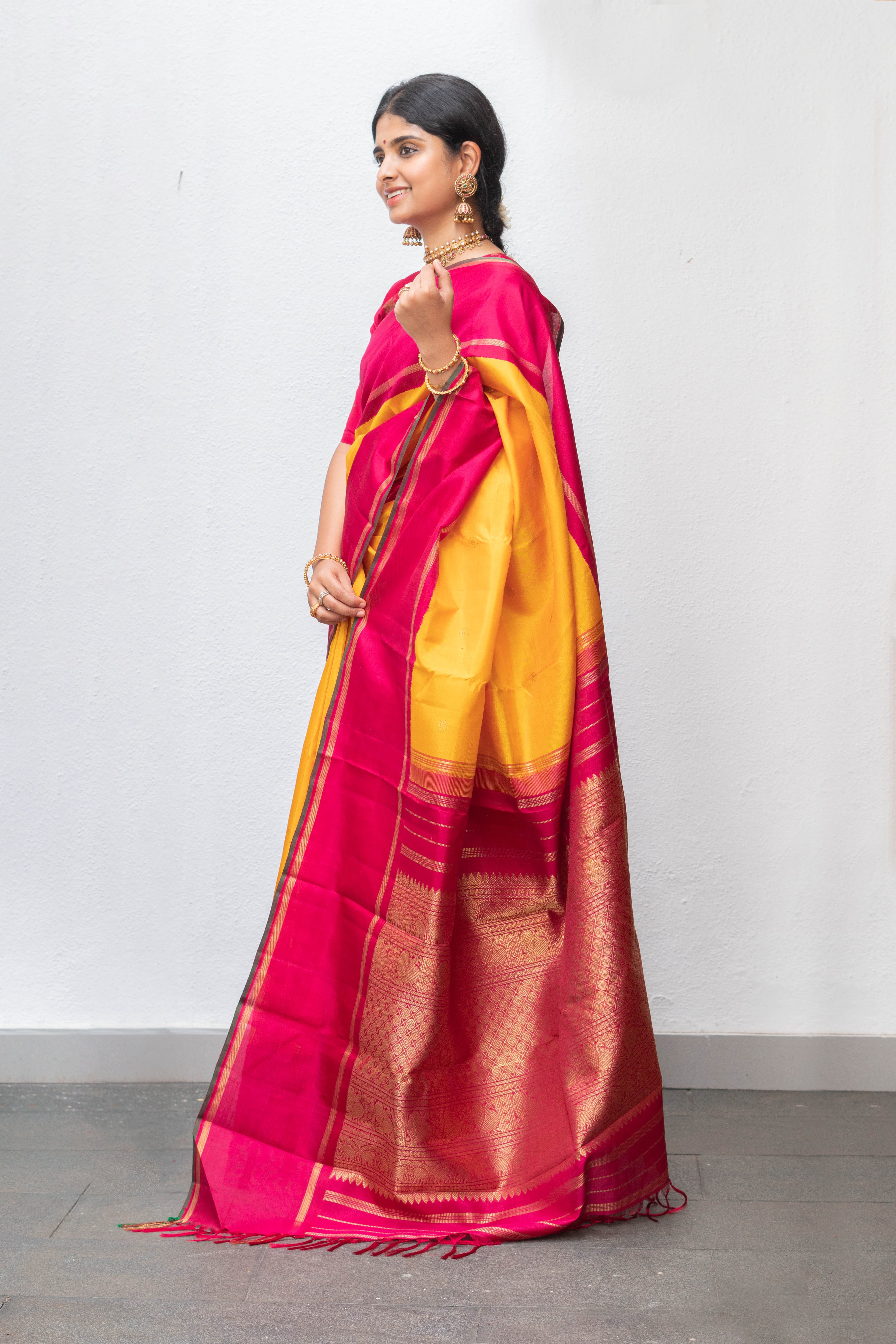 Yellow Arakku Korvai Kanjivaram Silk Saree