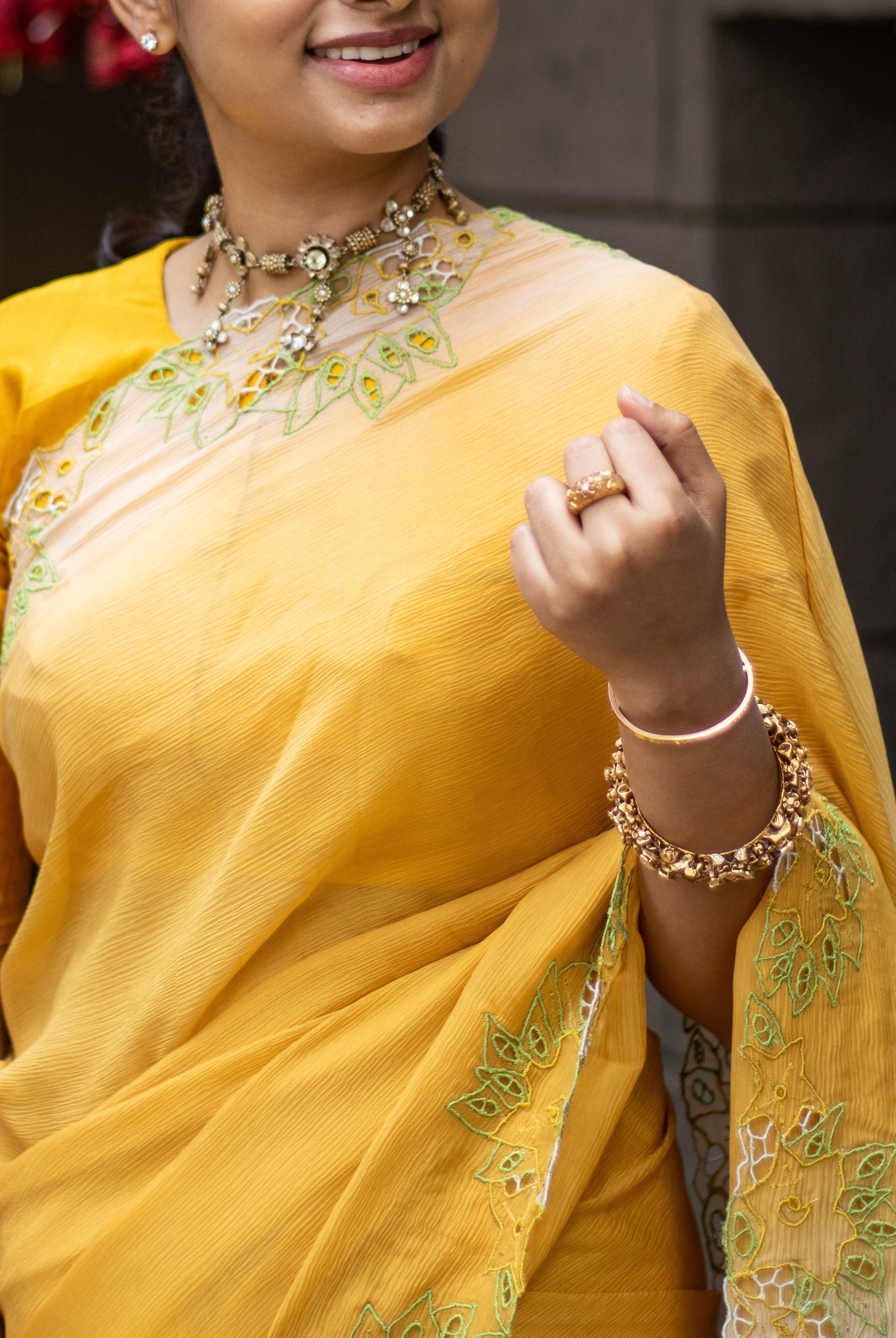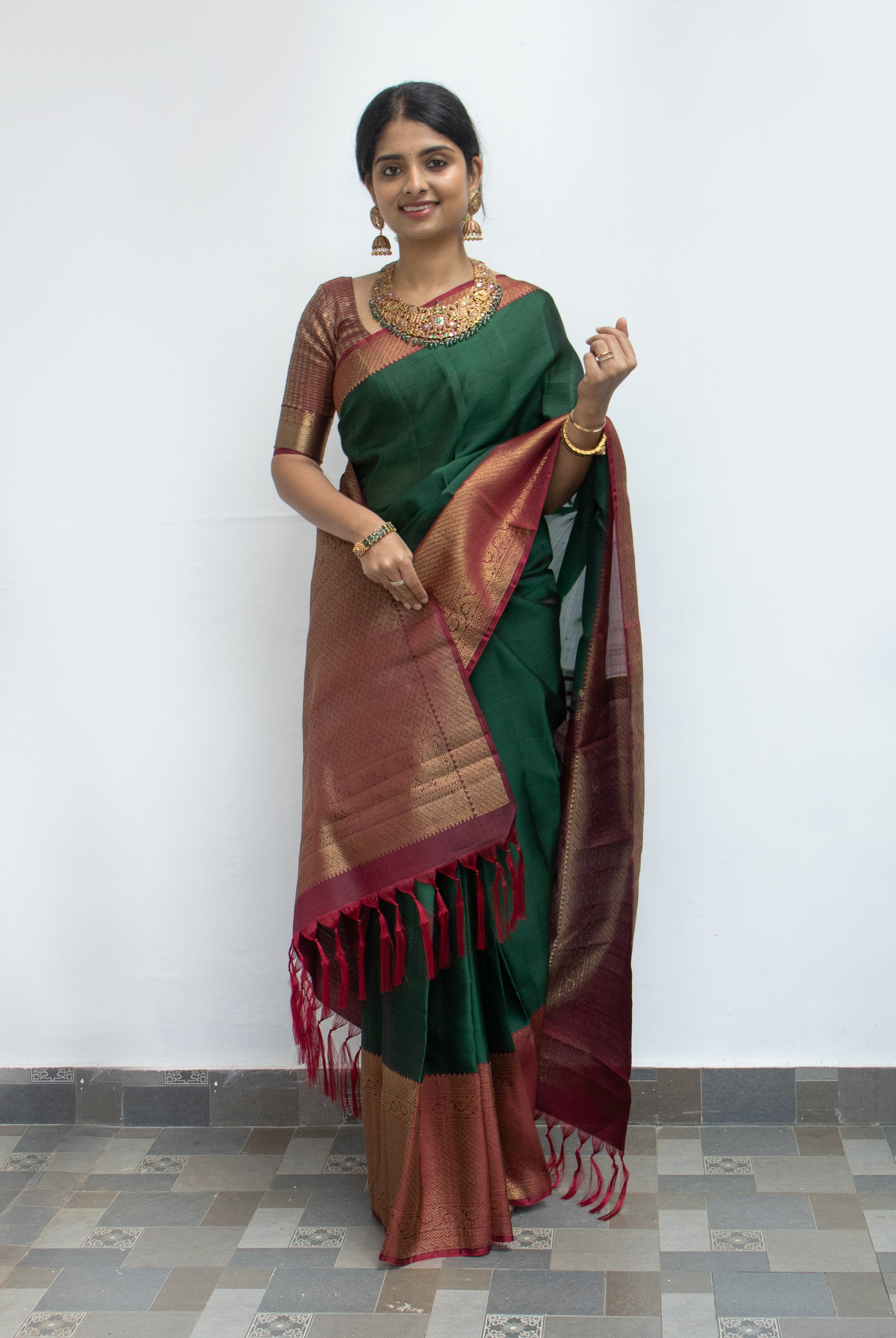 I wore it for my very first Sankranti after marriage. I was initially nervous about the day, but the way the saree draped so effortlessly and the endless "Where did you get that?" compliments from my new family—made me feel completely at ease. Now, every time I wear it, I’m back in that moment: my mother-in-law’s proud smile, the smell of fresh Pongal and the joy of feeling perfectly me while embracing new traditions.